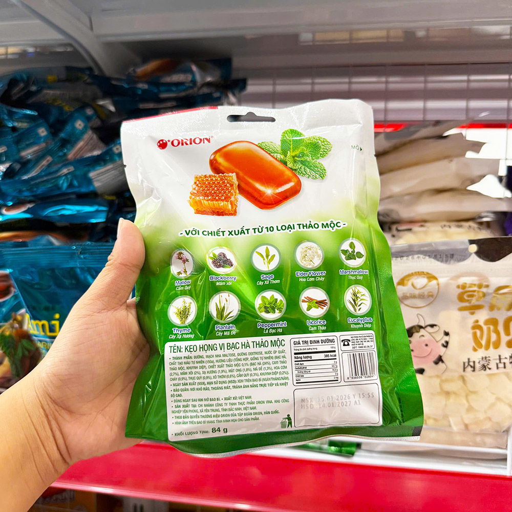 Kho sỉ kẹo Họng Orion Vị Bạc Hà Thảo Mộc Gói 84g