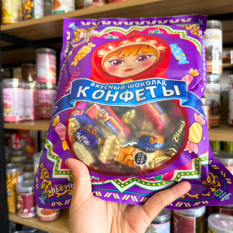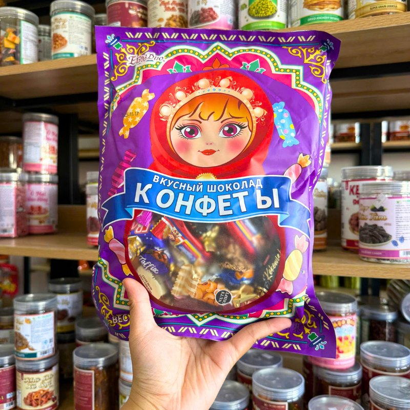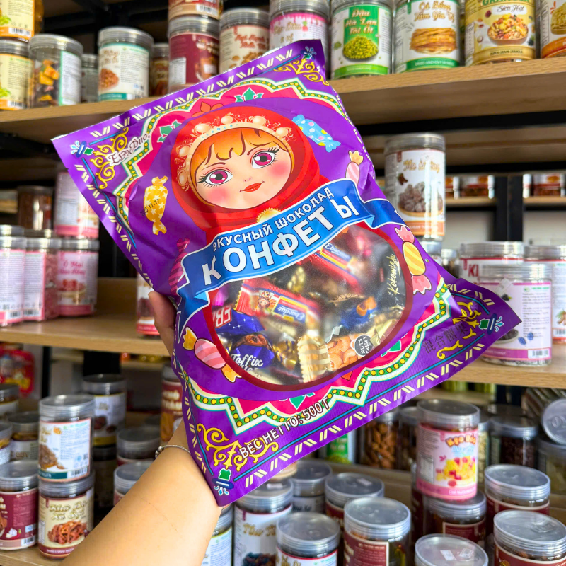 Kho sỉ kẹo Socola Búp Bê Nga Màu Tím Thơm Ngon 500g