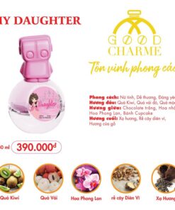 My Daughter được Good Charme phân loại thuộc nhóm hương hoa trái cây. dành cho những các bé gái từ 13 tuổi trở lên nên thiết kế chai với tông màu hồng chủ đạo cùng các hoạ tiết lâu đài và công chúa xinh xắn với trang phục kiêu sa thoát lên một Mùi hương thoang thoảng độc đáo, dễ thương & vô cùng đáng yêu.