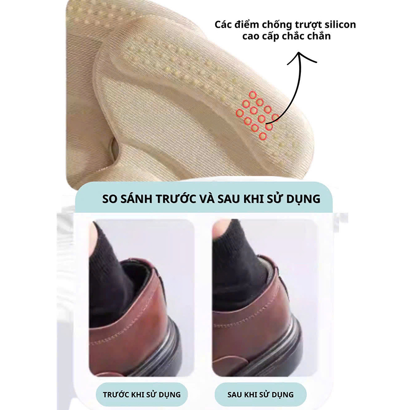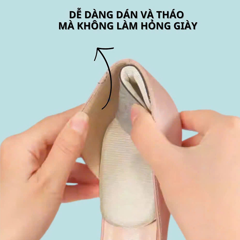 • Có 2 mặt, 1 mặt giúp lót êm chân, 1 mặt là băng keo giúp dán cố định vào trong gót giày.
