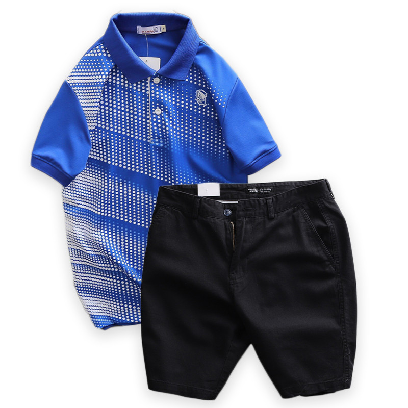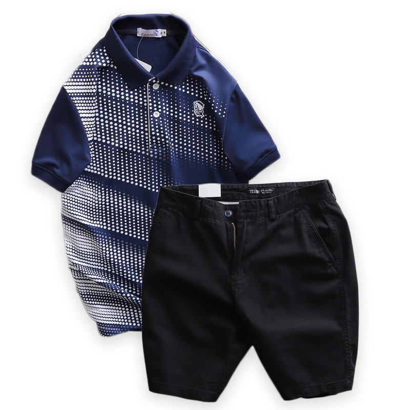Set Bộ Nam Quần Short Kaki Phối Áo Thun Cổ Bẻ In Chấm Bi
