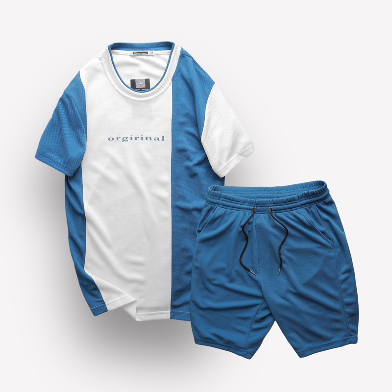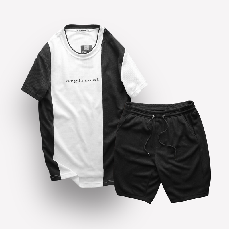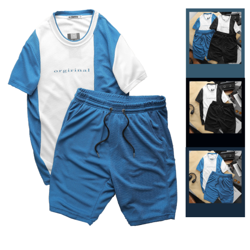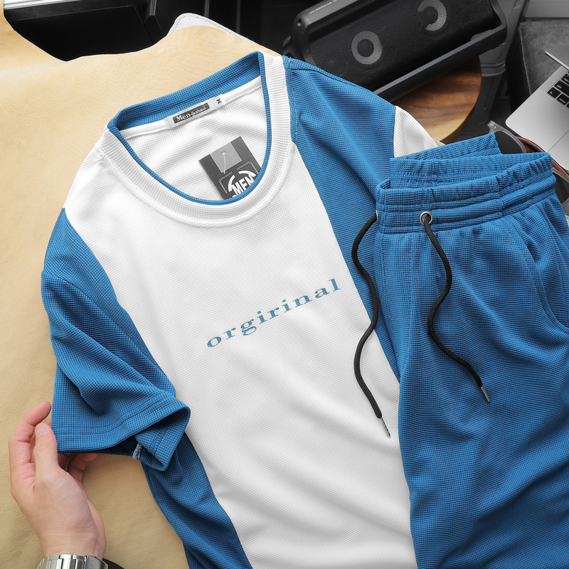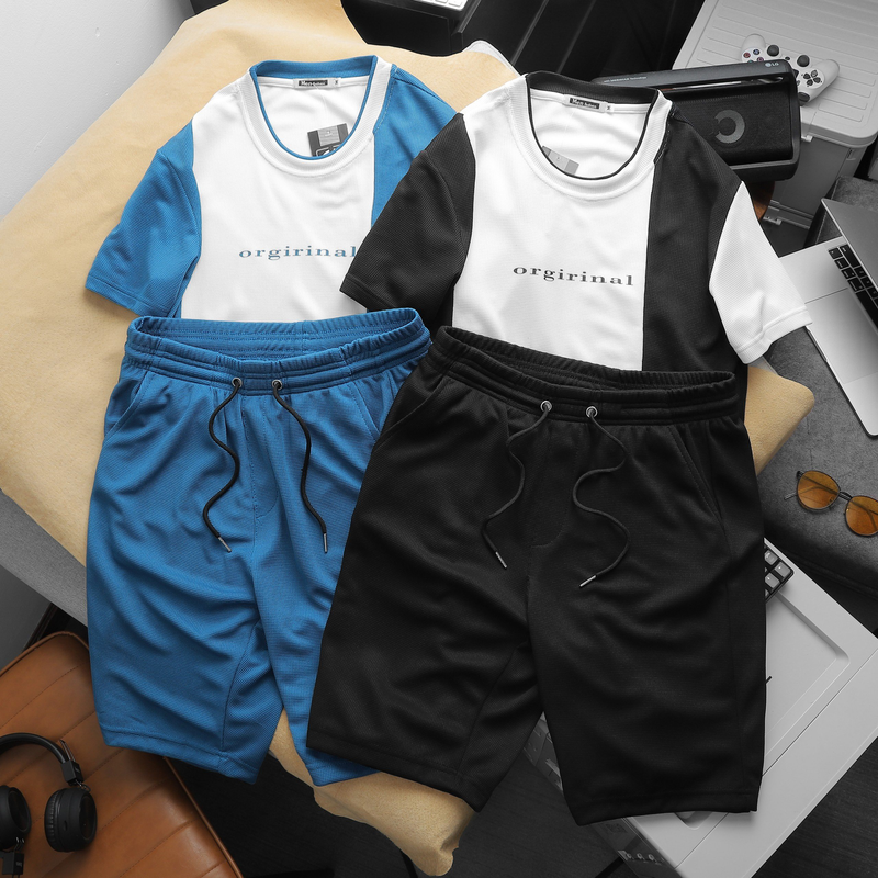 Set Bộ Nam Quần Short Thun Áo Cổ Tròn Sọc Dọc In Chữ Orgirinal
