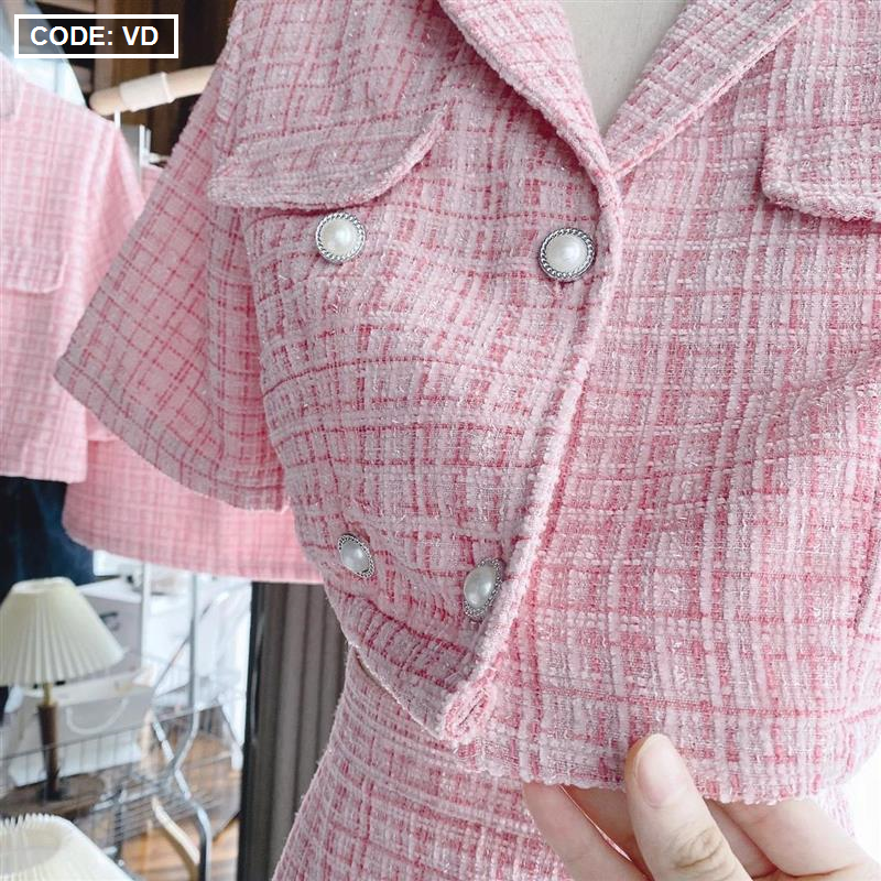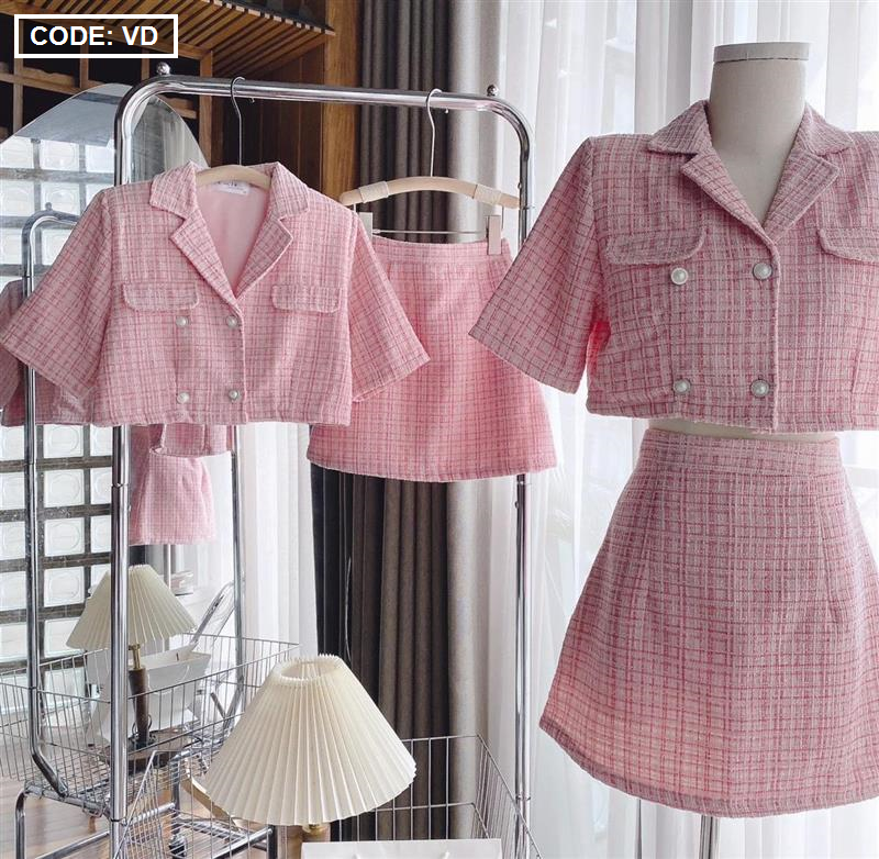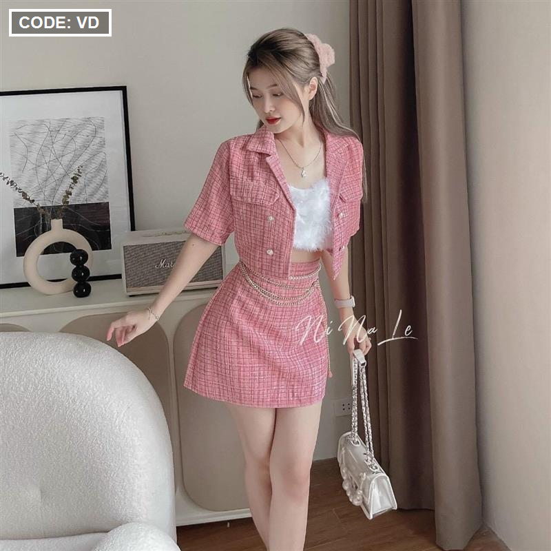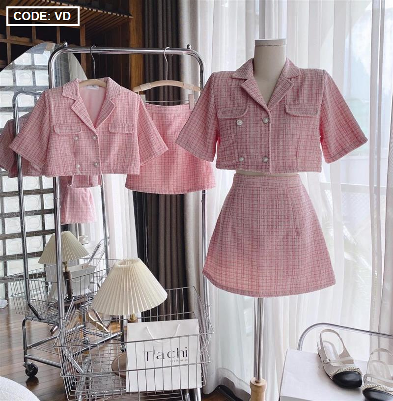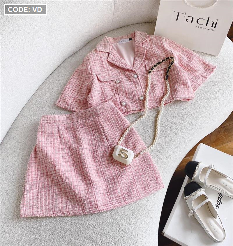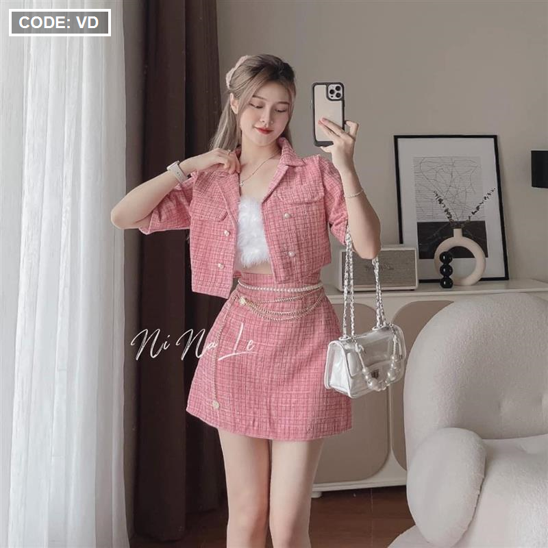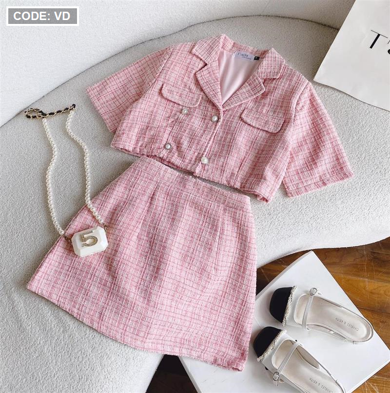 Kho sỉ sét crop dạ hồng túi nắp + chân váy