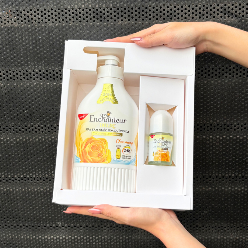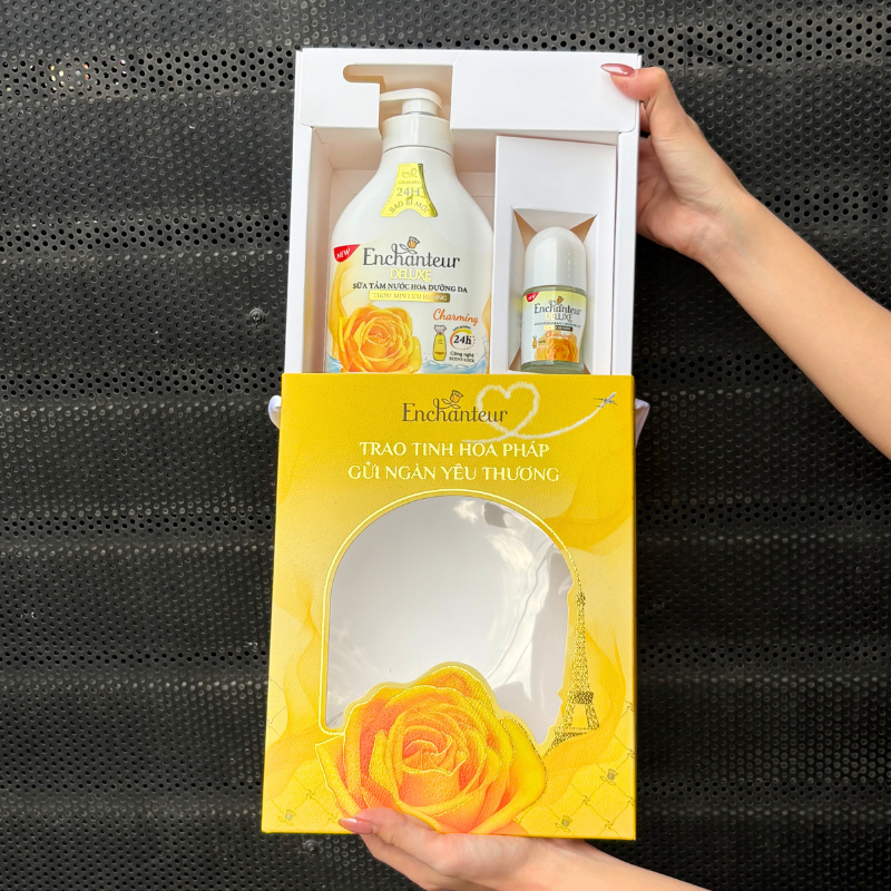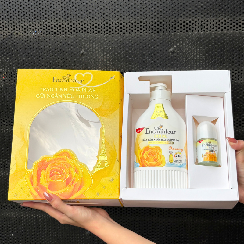 Kho sỉ set Quà Tặng Cao Cấp Enchanteur Deluxe Hương Nước Hoa Pháp + Lăn Khử Mùi (Set Màu Vàng)