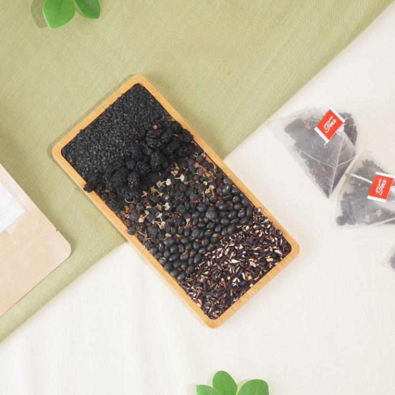 THÀNH PHẦN: Mè đen, dâu tằm, hắc kỷ tử, đỗ đen, gạo nếp