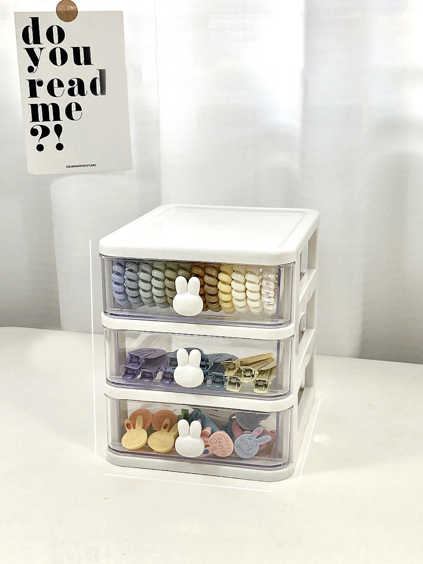 Kho sỉ tủ Nhựa 3 Tầng Mini Đựng Mỹ Phẩm Phụ Kiện Để Bàn Có Tay Cầm Thỏ 15.5x13x16.5cm