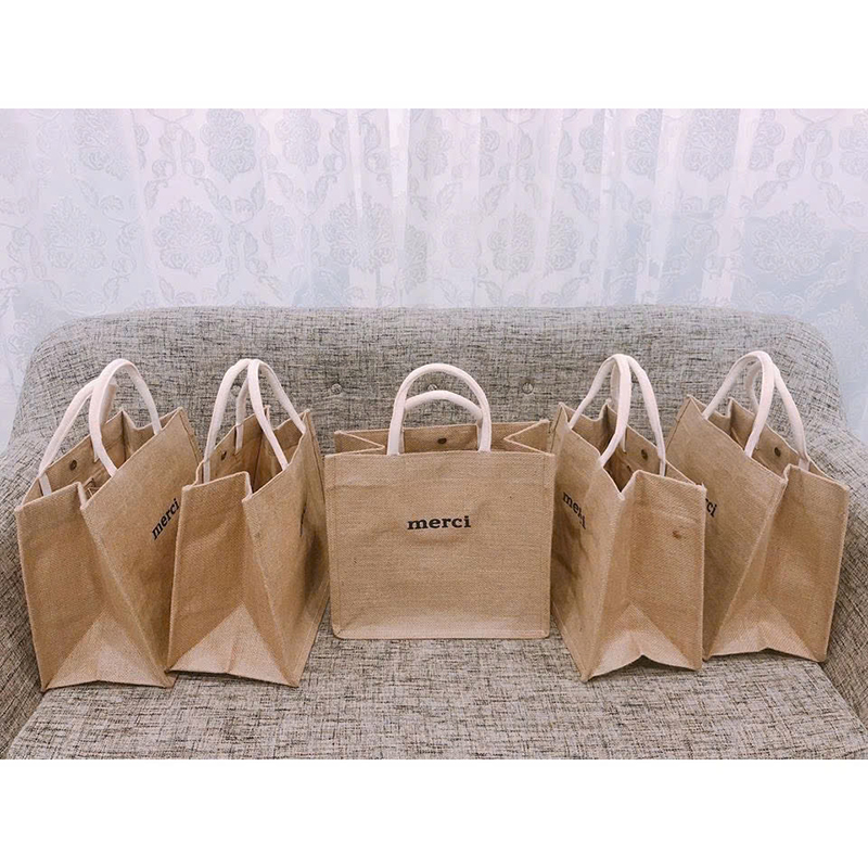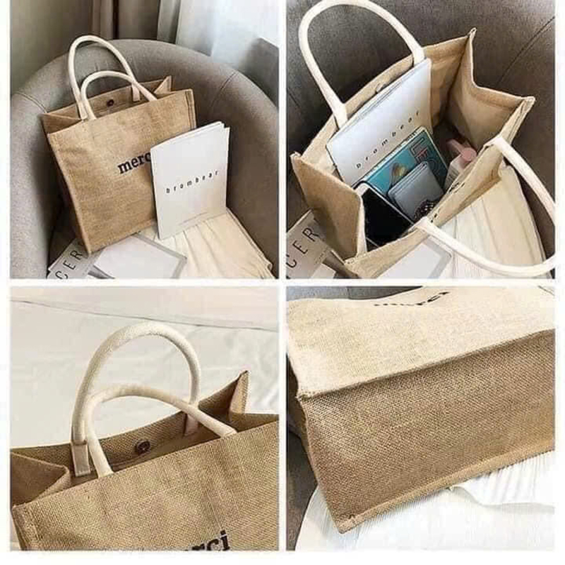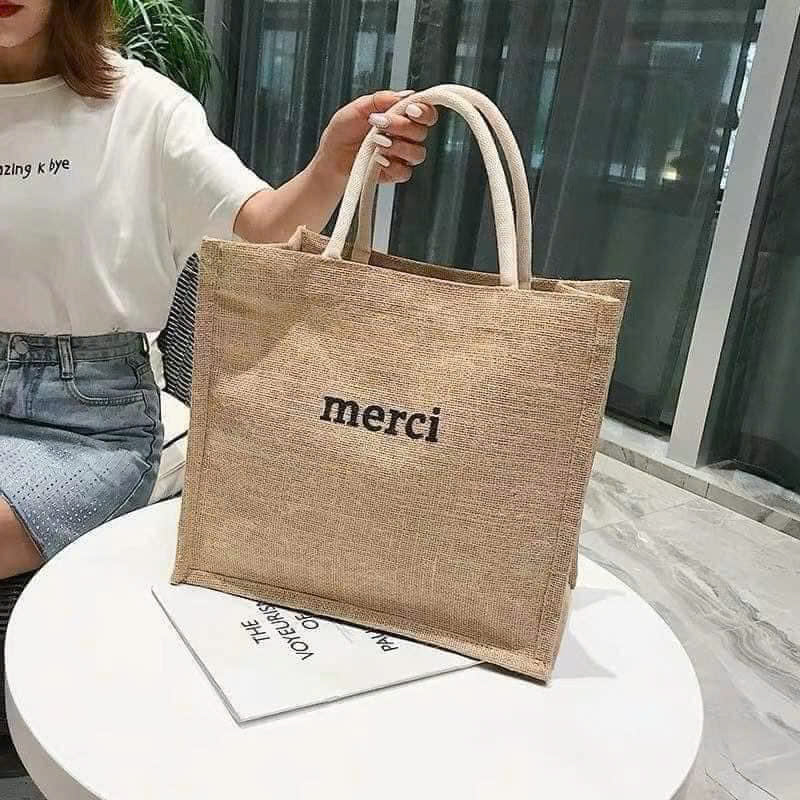 Kho sỉ túi Cói Merci – Túi Xách In Chữ Đơn Giản 36x31x19cm
