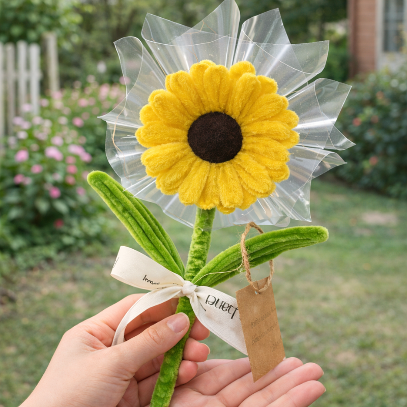 [Không Đèn Chớp] Hoa Gài Tiền – Hoa Gắn Tiền – Hoa Đựng Tiền Hướng Dương Trong Suốt – Hoa Sáp