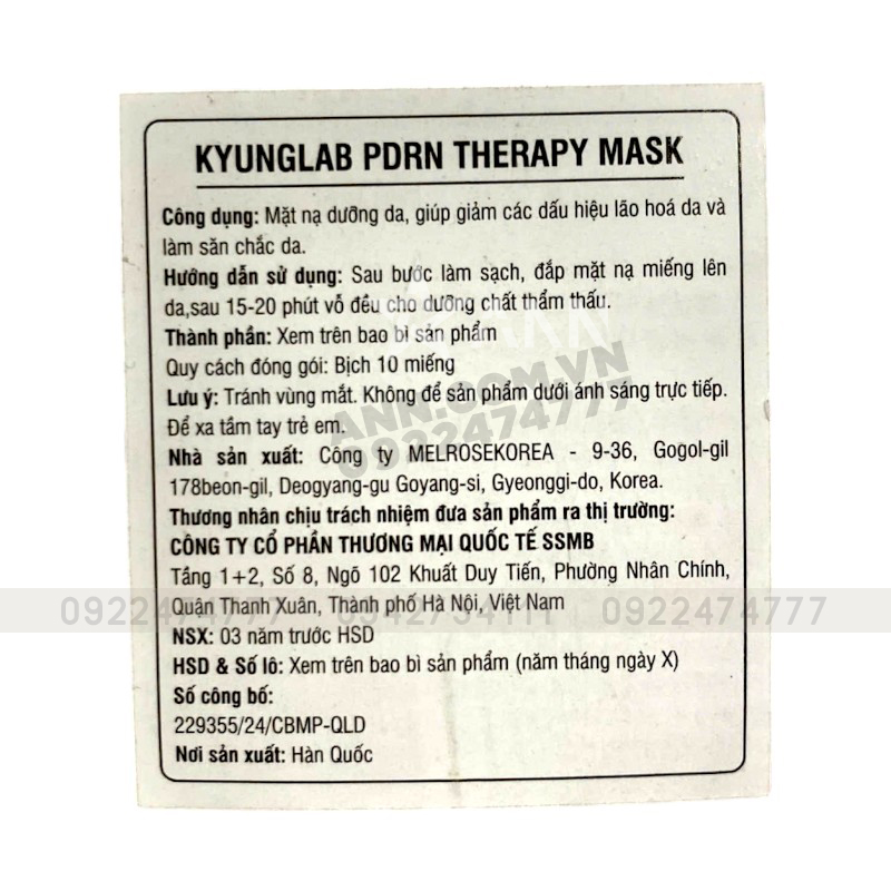 Mặt Nạ Kyung Lab PDRN Therapy Mask Hỗ Trợ Căng Bóng Da Combo 10 Miếng