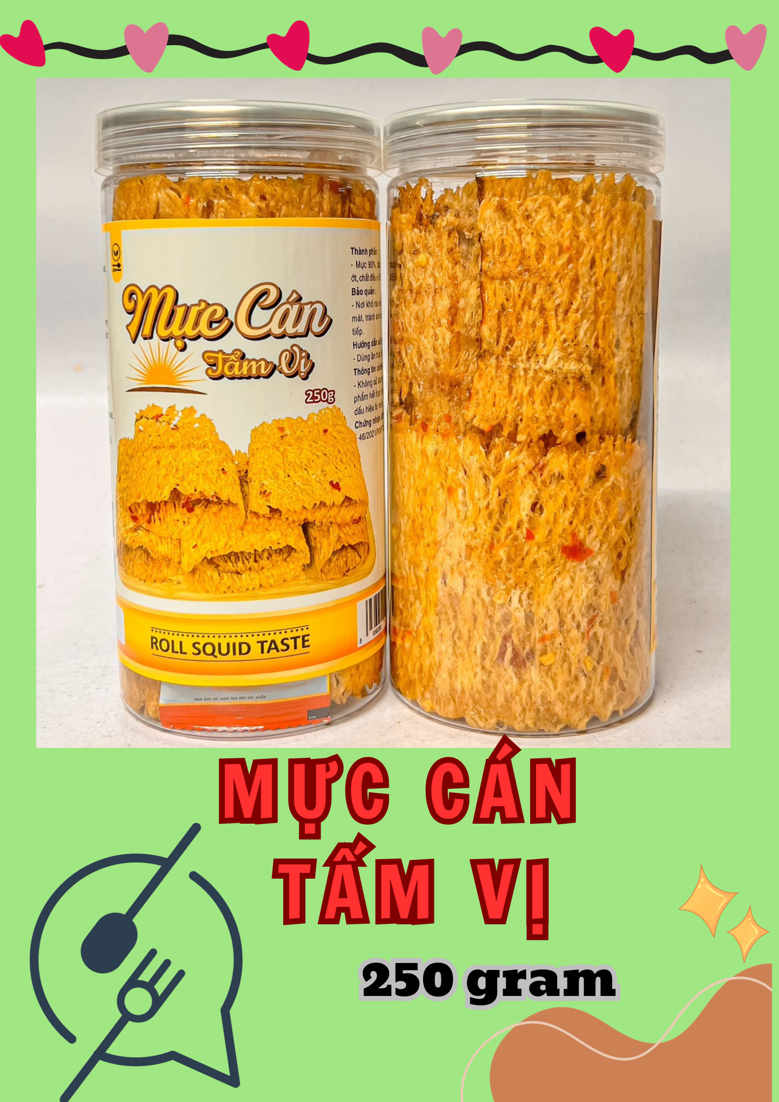 Thành phần : mực 95%, đường, muối ớt, chất điều vị E621
