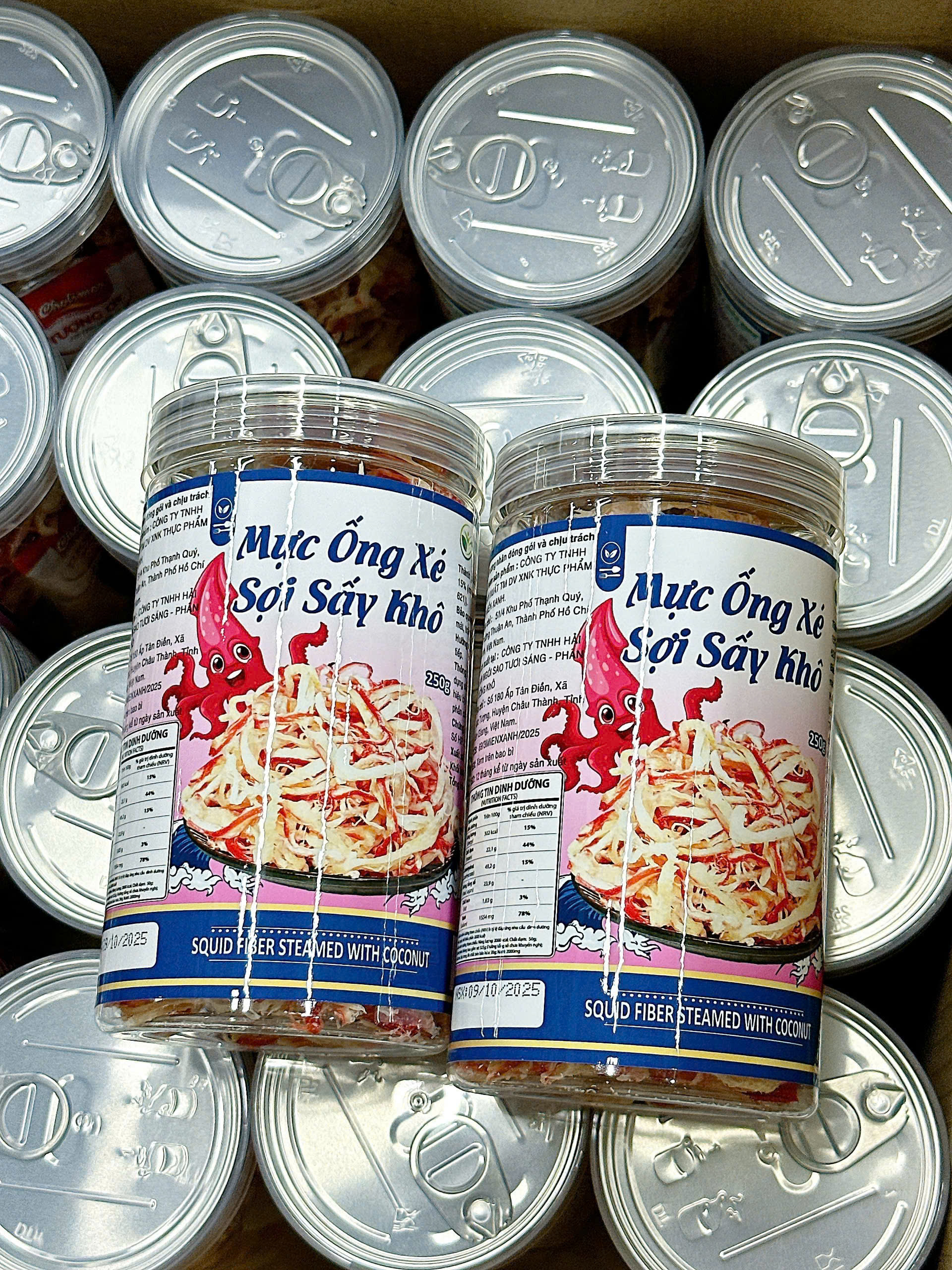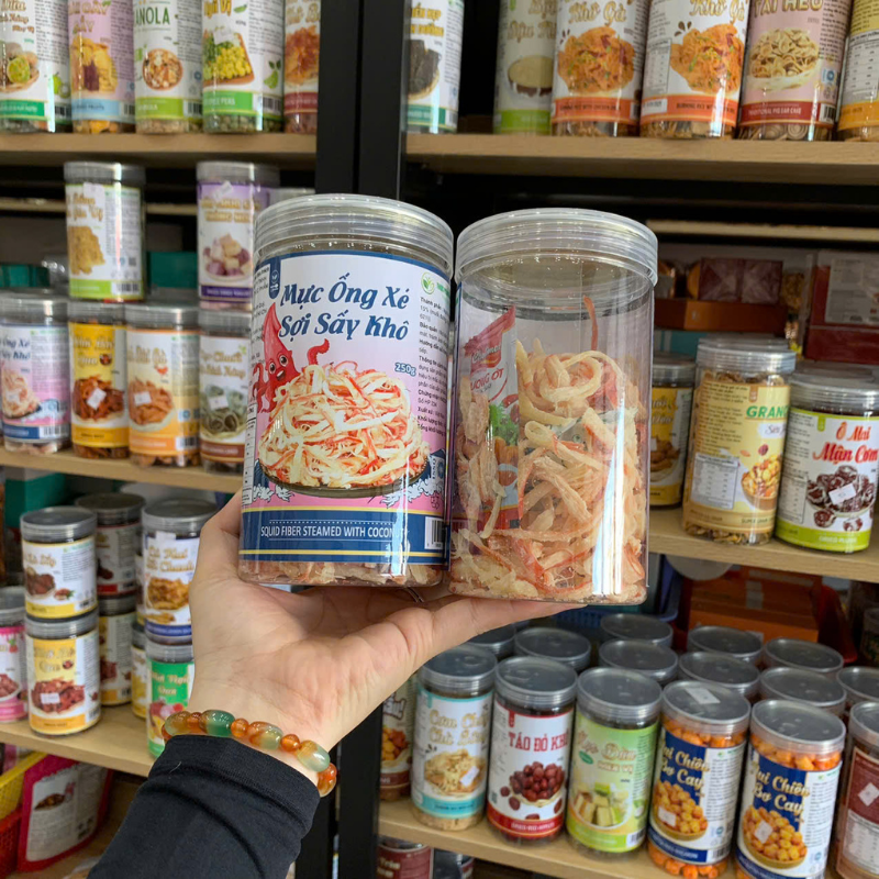 Mực Ống Xé Sợi Sấy Khô – Mực Dừa Xé Sợi Thơm Ngon 250g – Hũ Pet