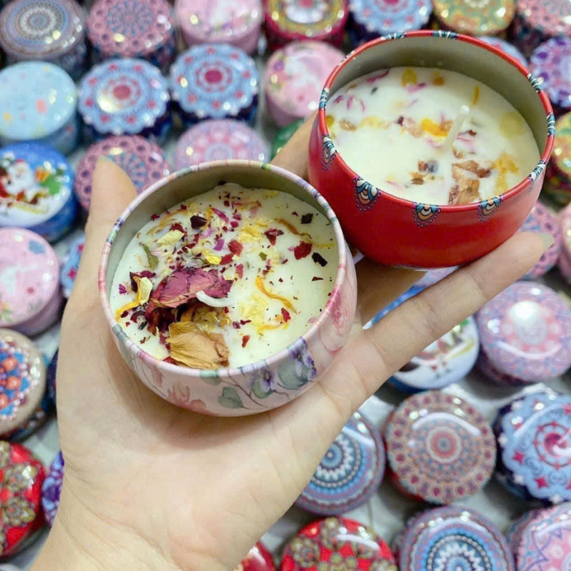 👍 Mỗi lọ nến 80g. Kích thước 6,3*4,2cm. Đựng trong hộp thiếc hoa văn rất đẹp và an toàn.