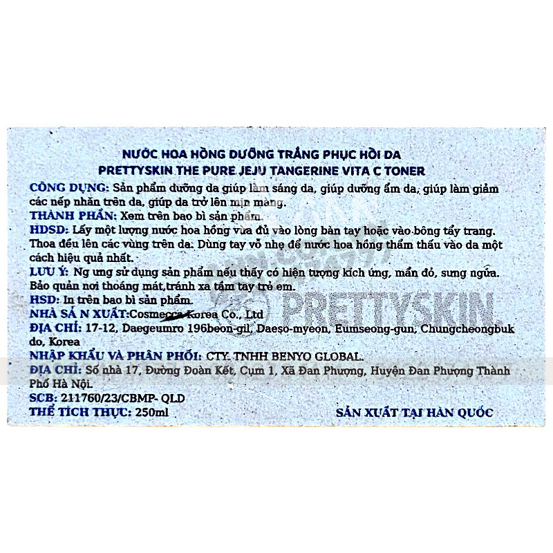 Nước Hoa Hồng Prettyskin The Pure Jeju Tangerine Vita C Toner 250ml