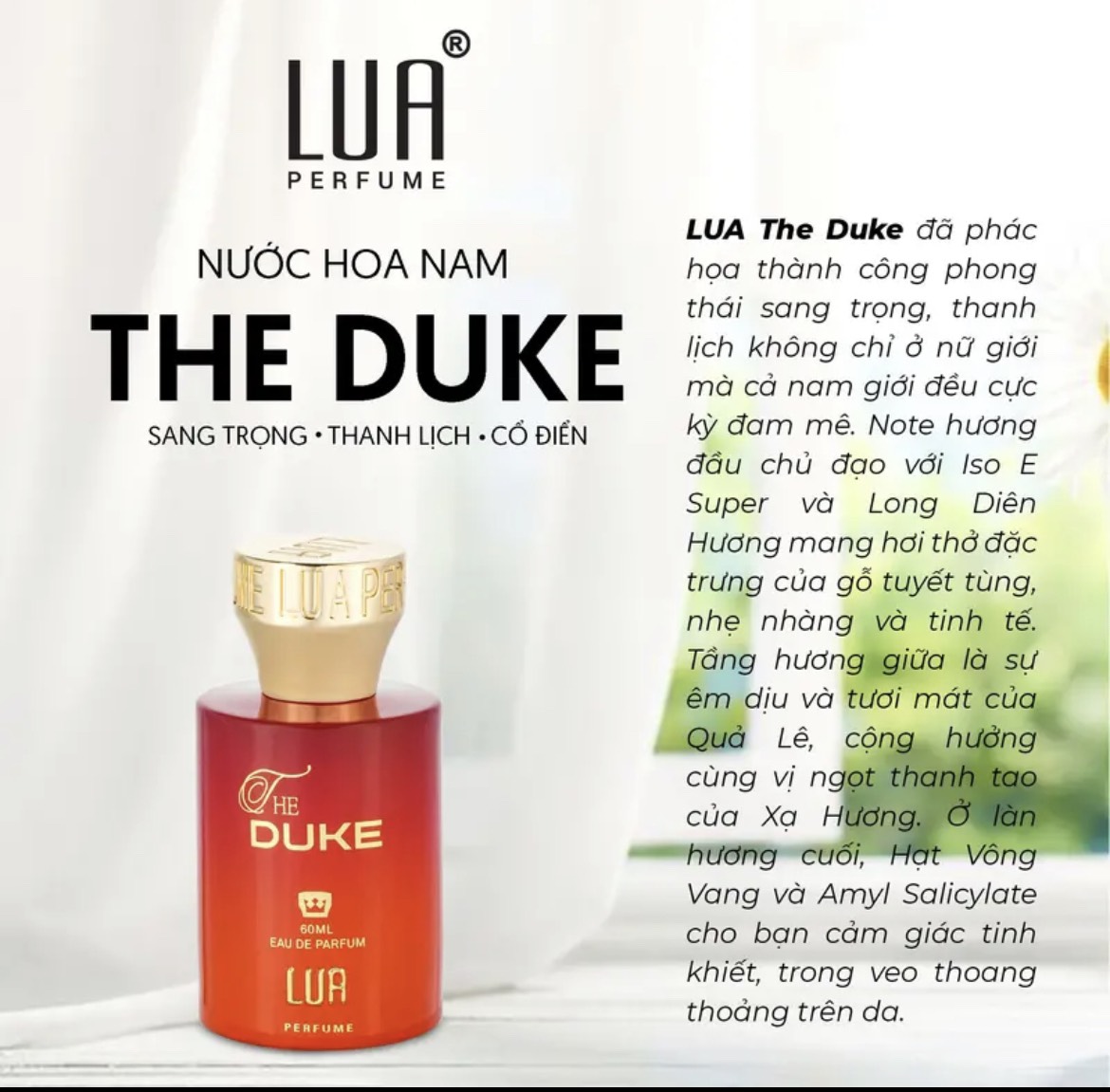 Nước Hoa “𝐋𝐔𝐀 𝐓𝐡𝐞 𝐃𝐮𝐤𝐞” đ𝚊̃ 𝚙𝚑𝚊́𝚌 𝚑𝚘̣𝚊 𝚝𝚑𝚊̀𝚗𝚑 𝚌𝚘̂𝚗𝚐 𝚙𝚑𝚘𝚗𝚐 𝚝𝚑𝚊́𝚒 𝚜𝚊𝚗𝚐 𝚝𝚛𝚘̣𝚗𝚐, 𝚝𝚑𝚊𝚗𝚑 𝚕𝚒̣𝚌𝚑 𝚔𝚑𝚘̂𝚗𝚐 𝚌𝚑𝚒̉ 𝚘̛̉ 𝚗𝚞̛̃ 𝚐𝚒𝚘̛́𝚒 𝚖𝚊̀ 𝚌𝚊̉ 𝚗𝚊𝚖 𝚐𝚒𝚘̛́𝚒 đ𝚎̂̀𝚞 𝚌𝚞̛̣𝚌 𝚔𝚢̀ đ𝚊𝚖 𝚖𝚎̂