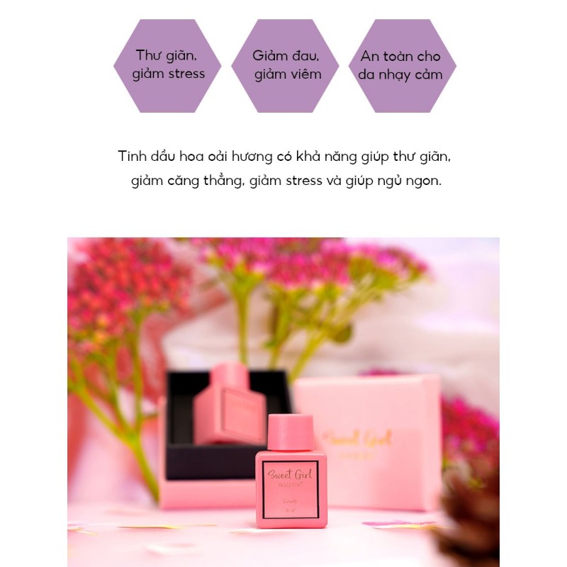 + Giảm khó chịu trong thời kì kinh: Không chỉ khử mùi hôi trong thời kì kinh nguyệt, Chiết xuất hoa oải hương còn giúp nàng giảm căng thẳng, giảm các triệu chứng khó chịu và đau bụng trong kì đèn đỏ.