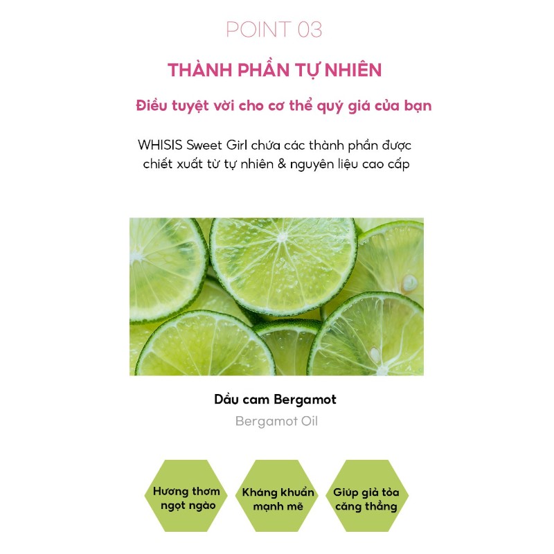 + Giảm mùi hôi cơ thể: Nhiều chị em ngại ngùng khi vùng kín có mùi hôi tự nhiên, nước hoa vùng kín WHISIS Sweet Girl sẽ làm biến mất hoàn toàn những mùi khó ngửi, thay vào đó là mùi thơm ngọt ngào quyến rũ sẽ khiến các nàng thoải mái và tự tin hơn.