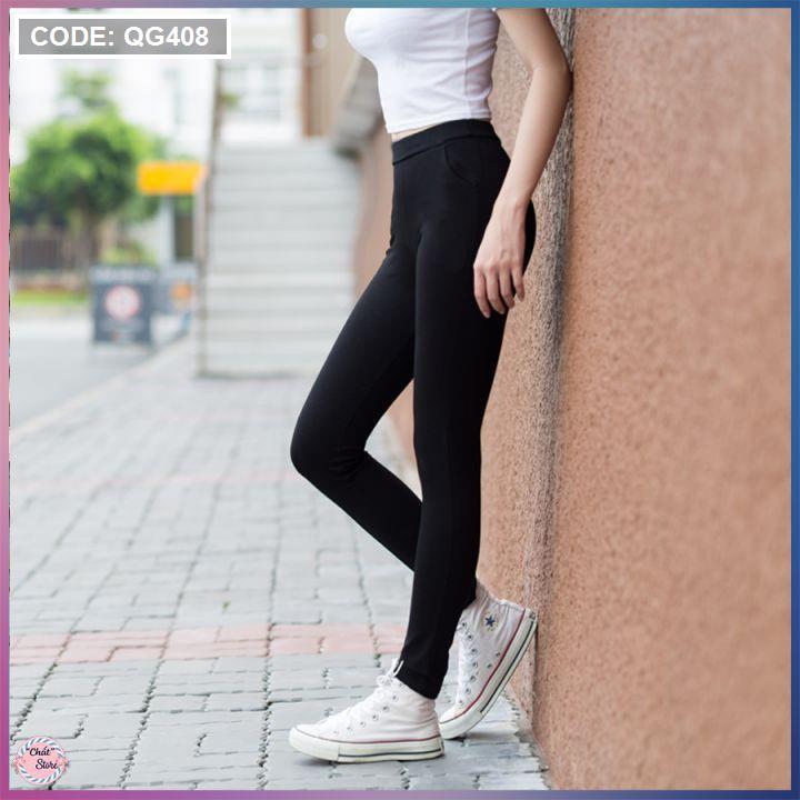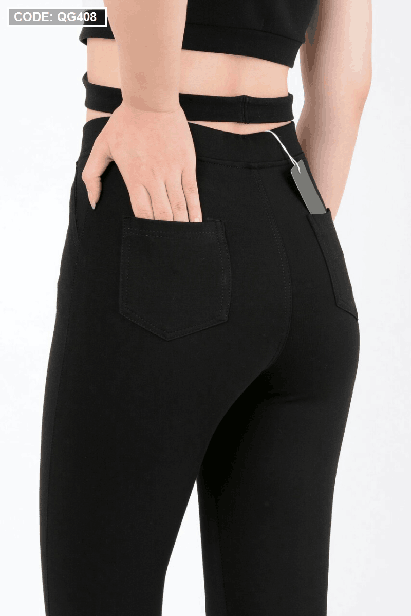Quần Leggin nữ 2 túi sau màu đen kèm túi cao cấp