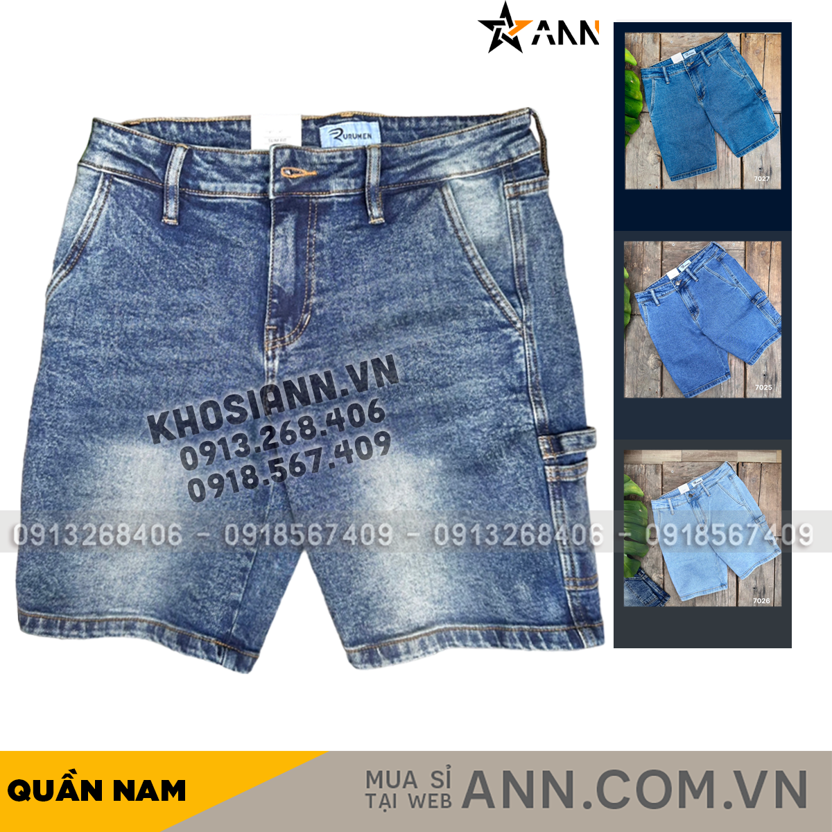 Quần Short Jeans Nam Rurumen Cao Cấp Chất Liệu Co Giãn (Có size 36)