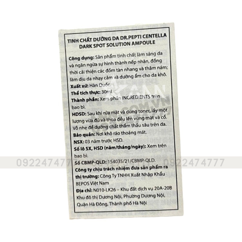 Serum Dr.Pepti Hàn Quốc Chiết Xuất Rau Má Centella Dark Spot Solution Ampoule 30ml