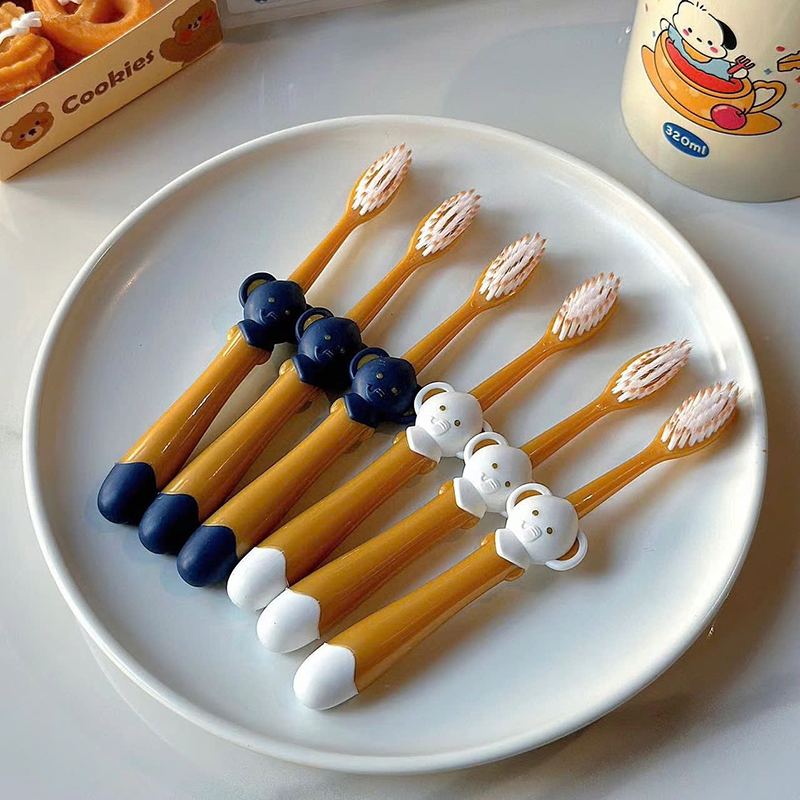 🐻 🐻 Phù hợp cho cả bé trai bé gái. Chất liệu được làm từ sợi nylong, lông bàn chải mềm mướt, đầu bàn chải được thiết kế thon gọn để k làm đau lợi bé và giúp việc đánh răng dễ dàng hơn.