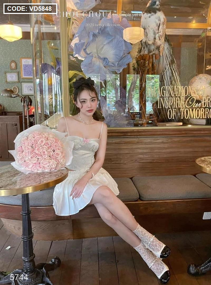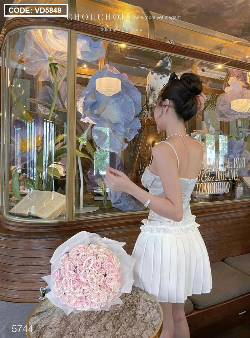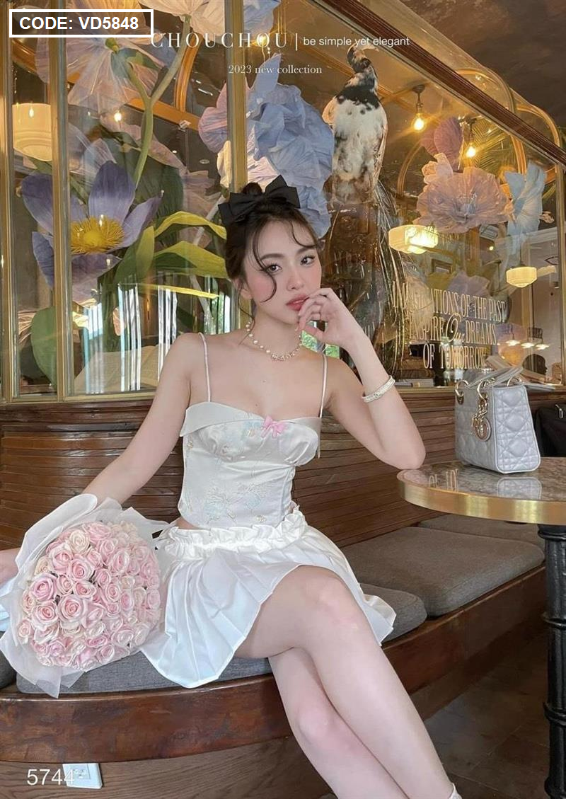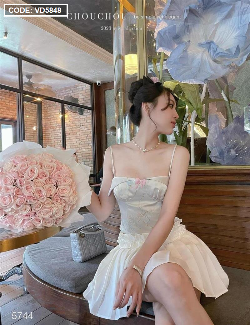 Hãy là người đầu tiên nhận xét “Sét áo gấm hoạ 2 dây cúp nhún nơ ngực + chân váy xếp ly” Hủy