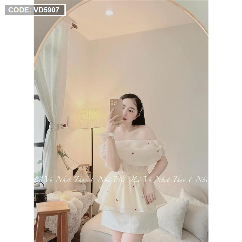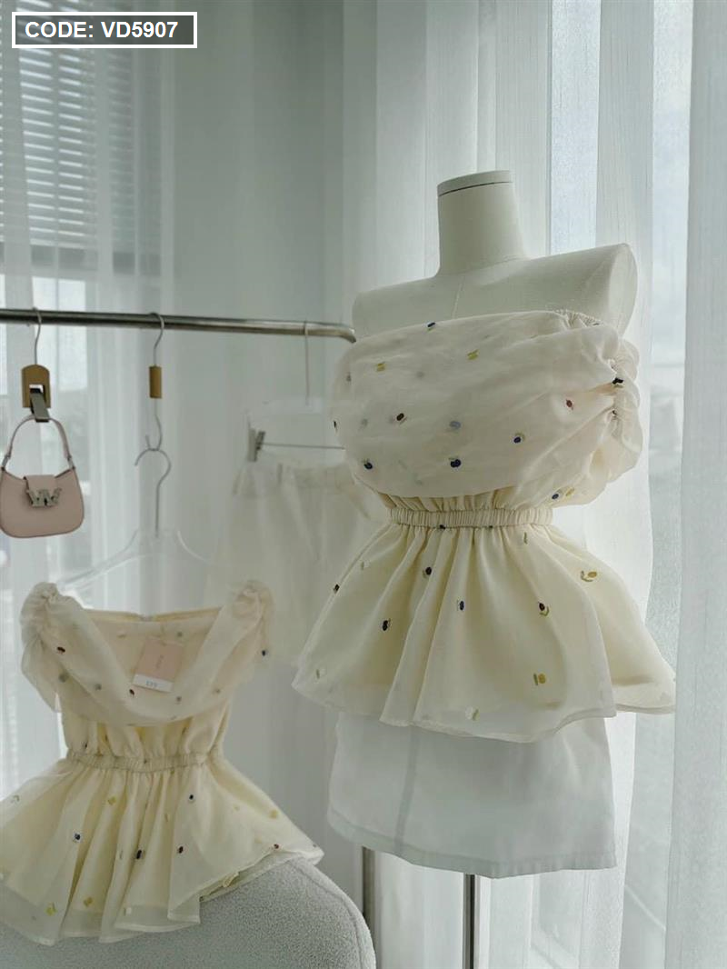 Hãy là người đầu tiên nhận xét “Sét áo hoa trễ vai xếp bo eo + chân váy trắng” Hủy
