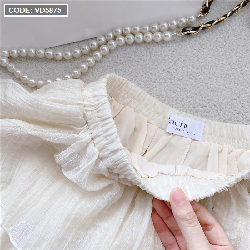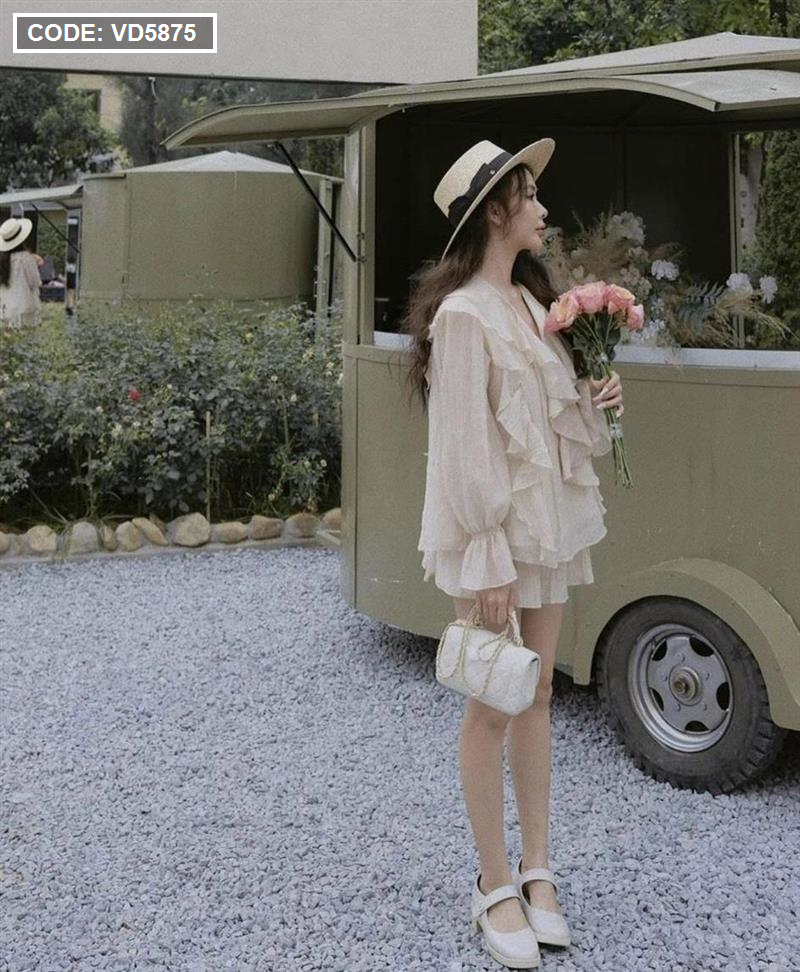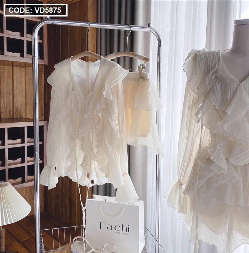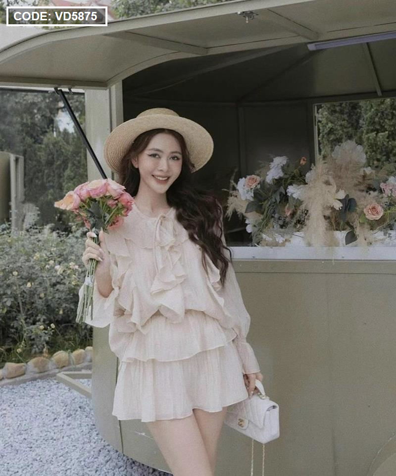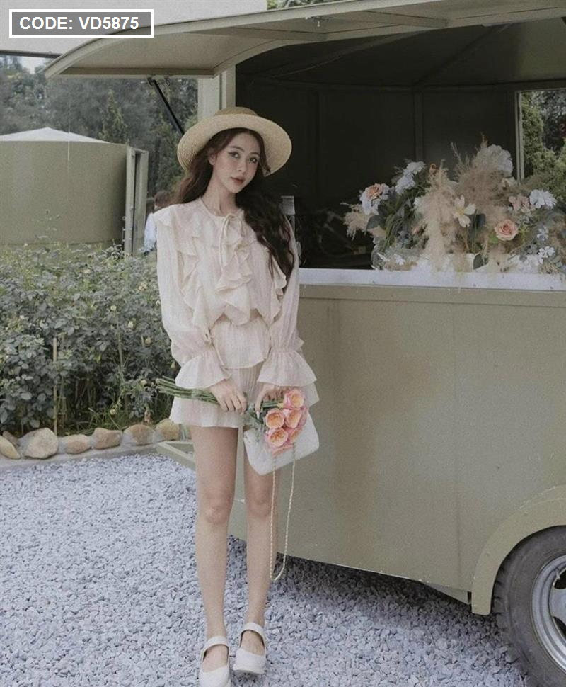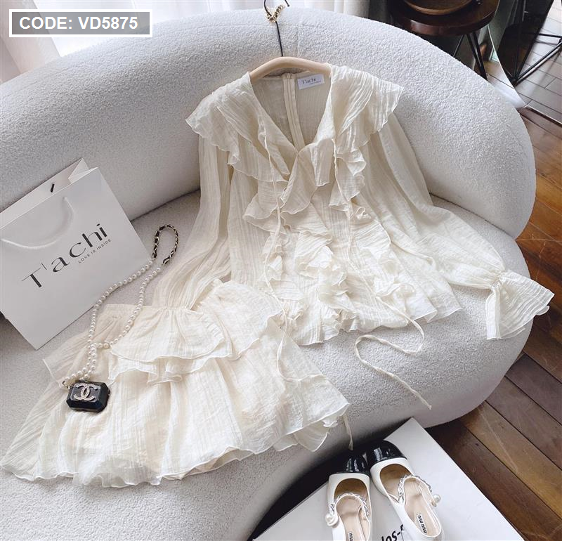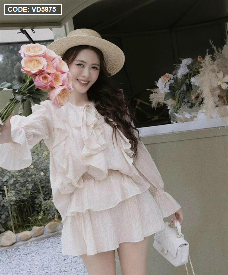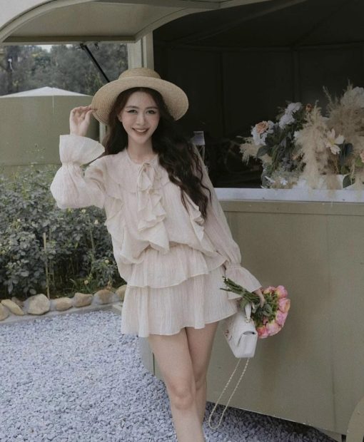 Sét áo nude viền bèo + chân váy