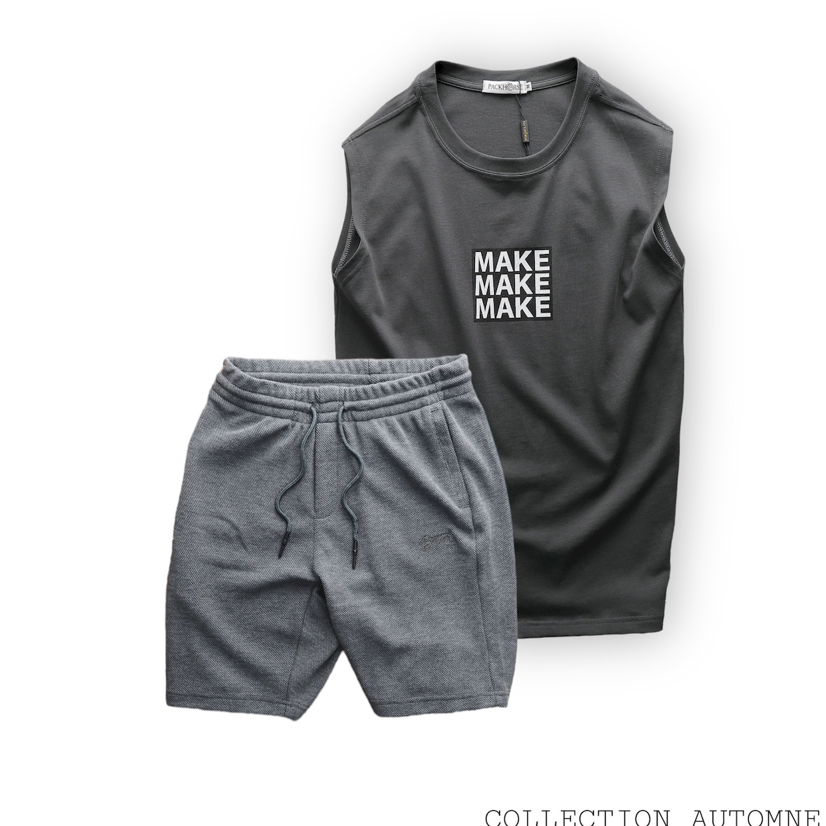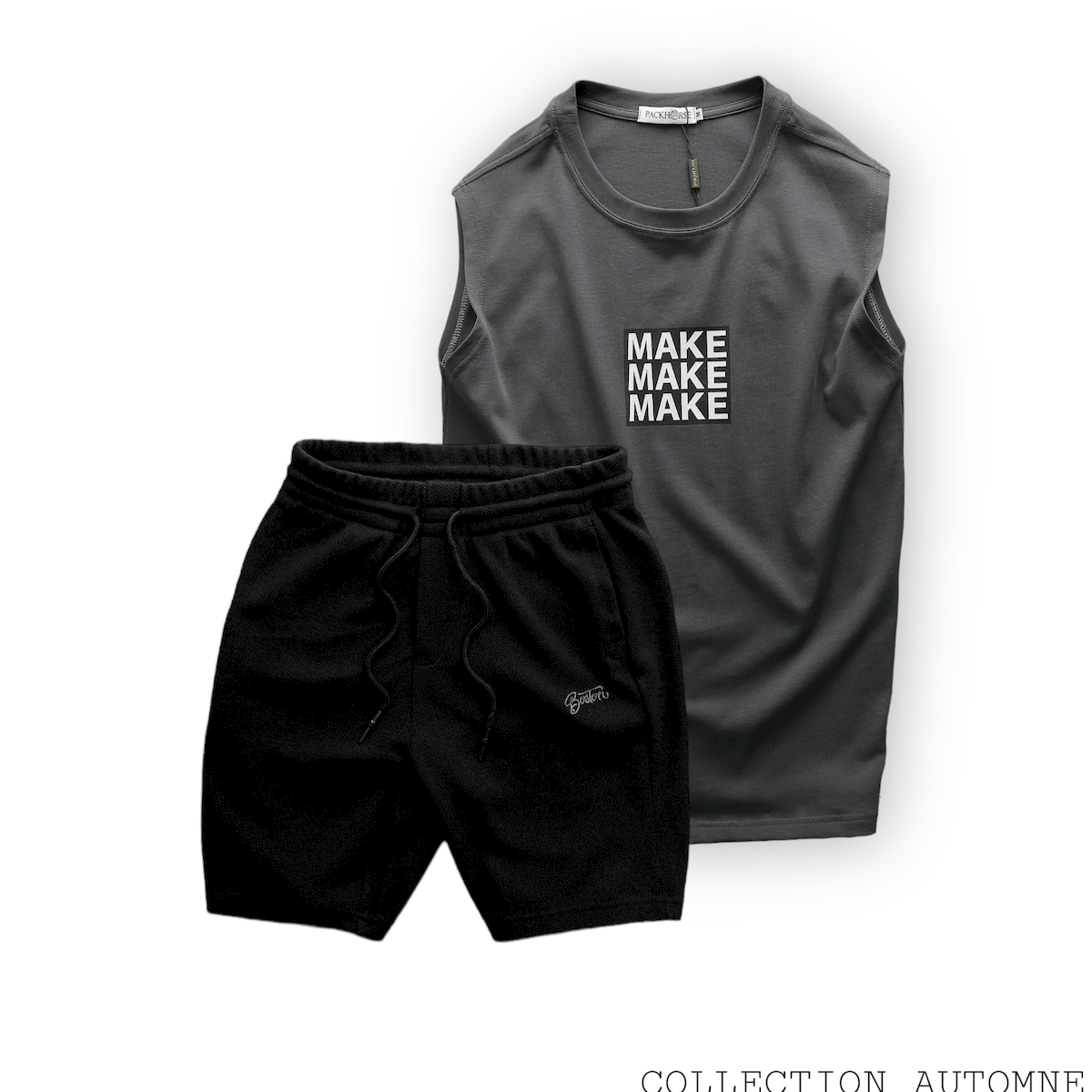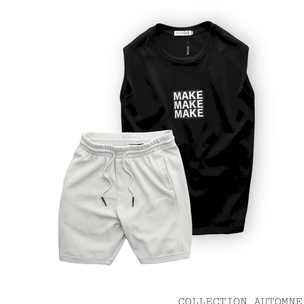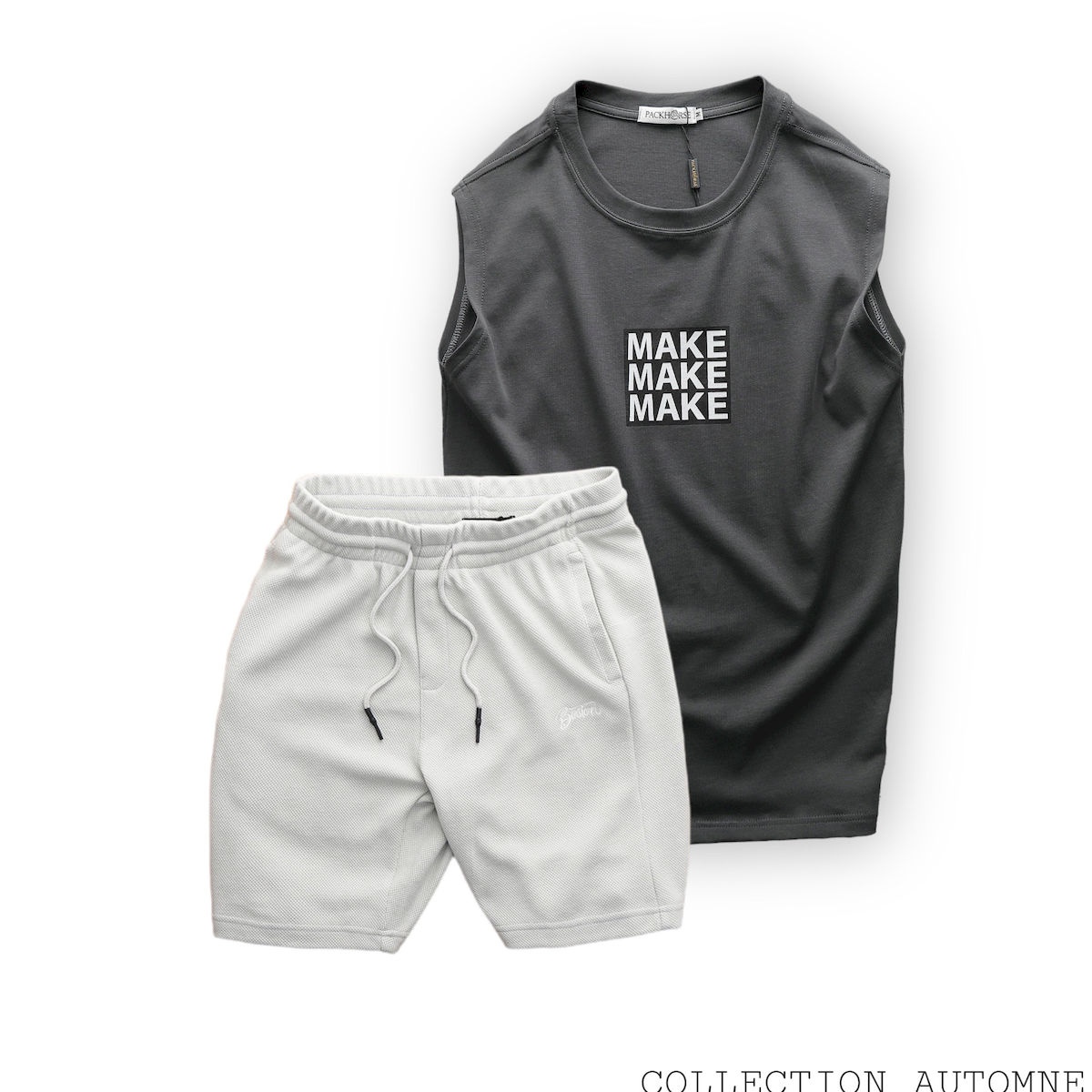 Set Bộ Nam Áo Ba Lỗ In Chữ Make Quần Short Thun Thêu Chữ Boston