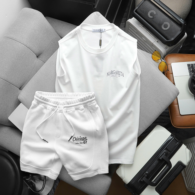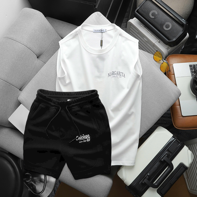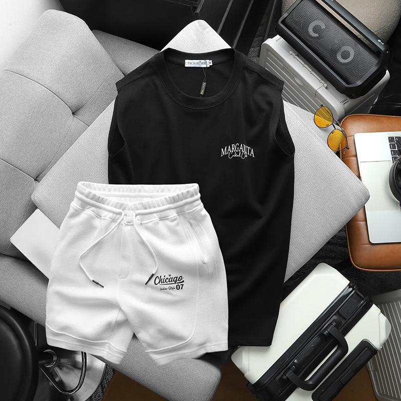 - Thiết kế: Áo thun 3 lỗ in chữ Margarita Cocktail Club năng động, trẻ trung kết hợp với quần short Chicago cao cấp mang đến phong cách hiện đại và sành điệu.