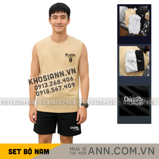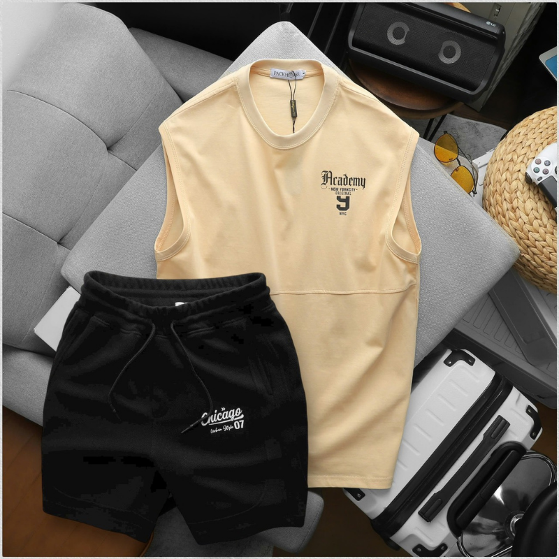 Set Bộ Nam Áo Thun Ba Lỗ + Quần Short Chicago In Chữ Phong Cách Trẻ Trung Năng Động Big Size