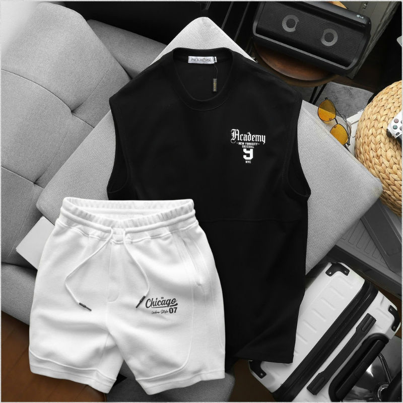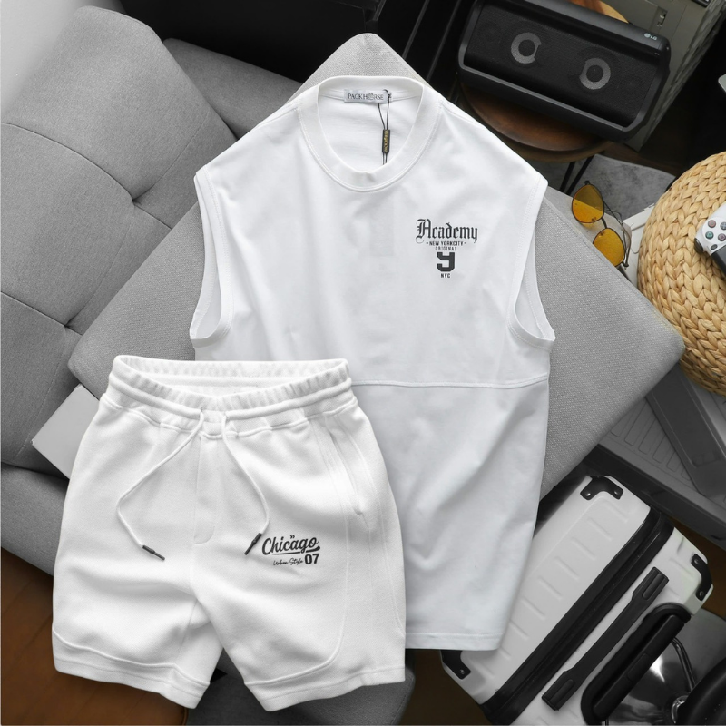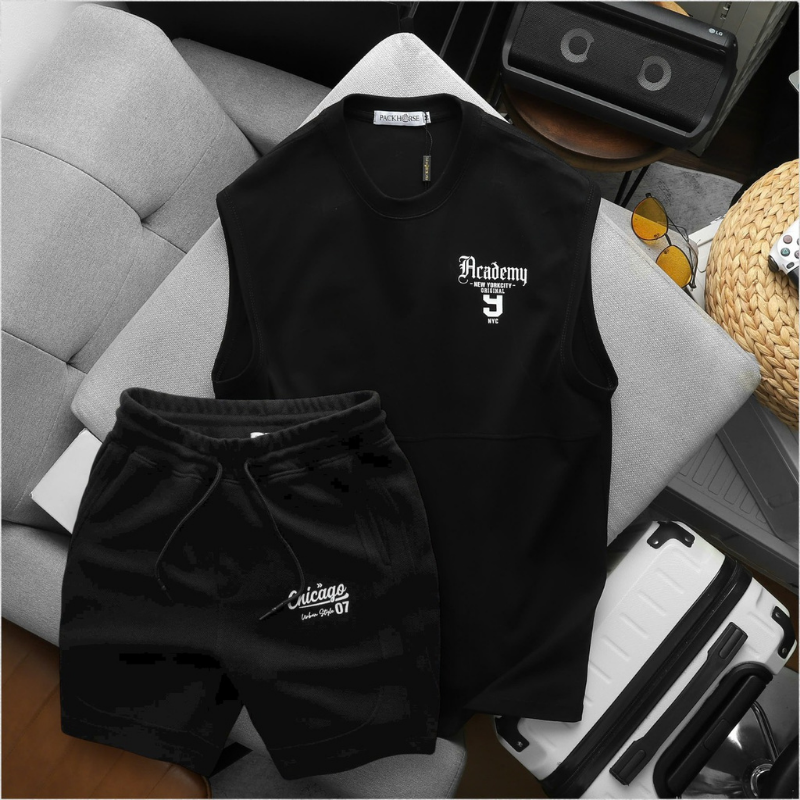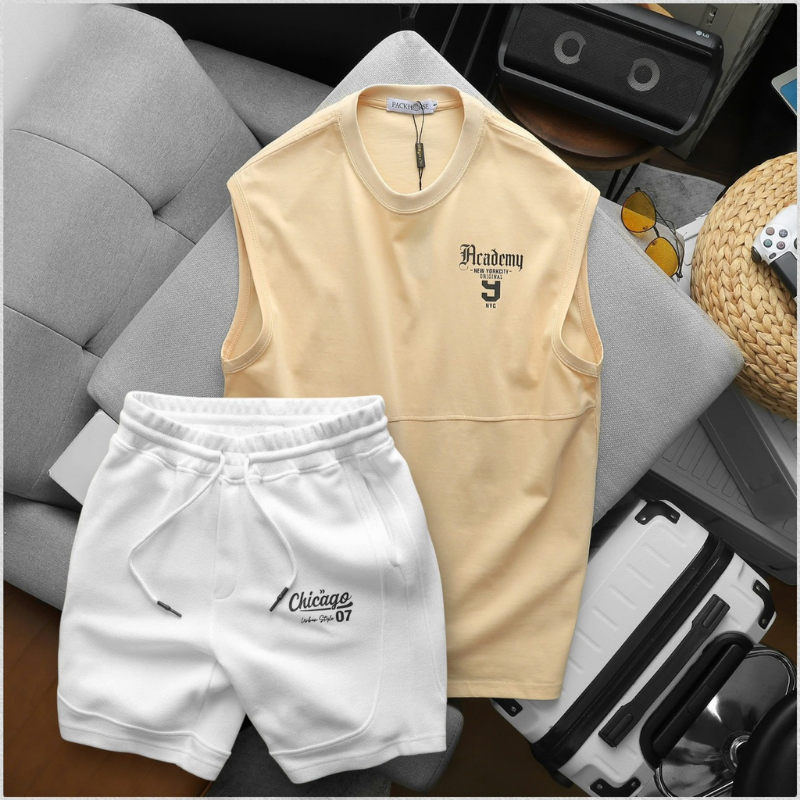 Set Bộ Nam Áo Thun Ba Lỗ & Quần Short Chicago In Chữ Phong Cách Trẻ Trung Năng Động Big Size