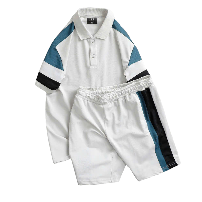 Set Bộ Nam Áo Thun Cổ Bẻ Phối Sọc Màu + Quần Short Thun Thể Thao (Big Size)