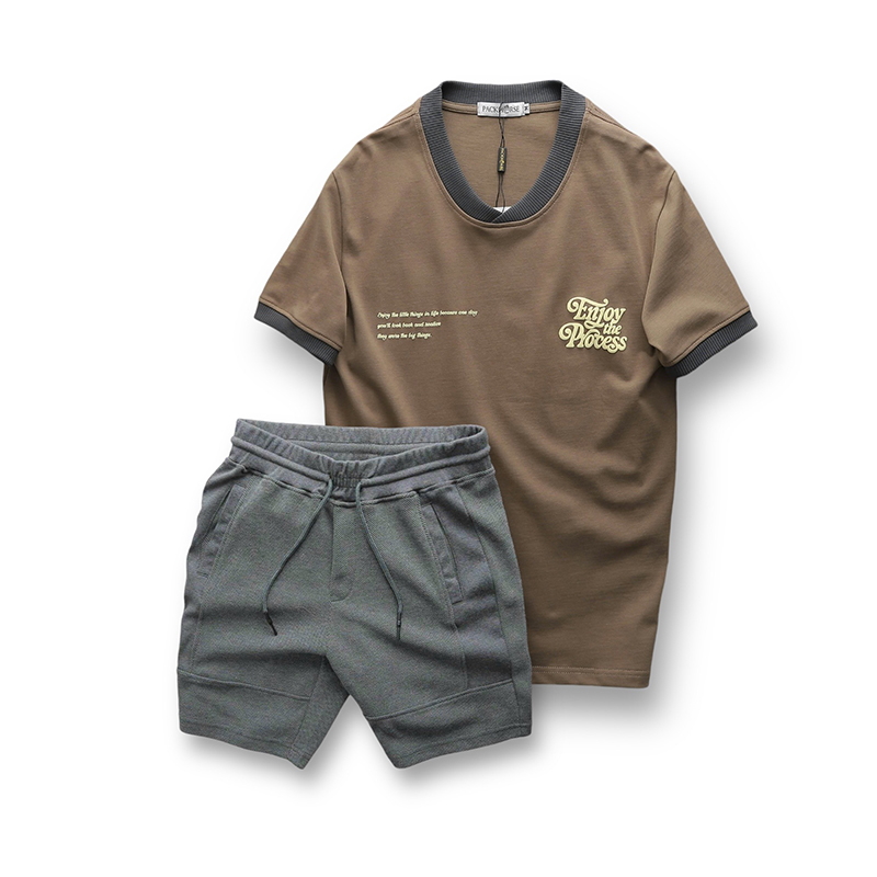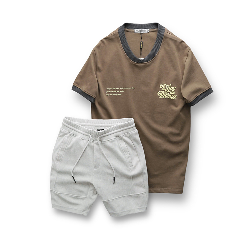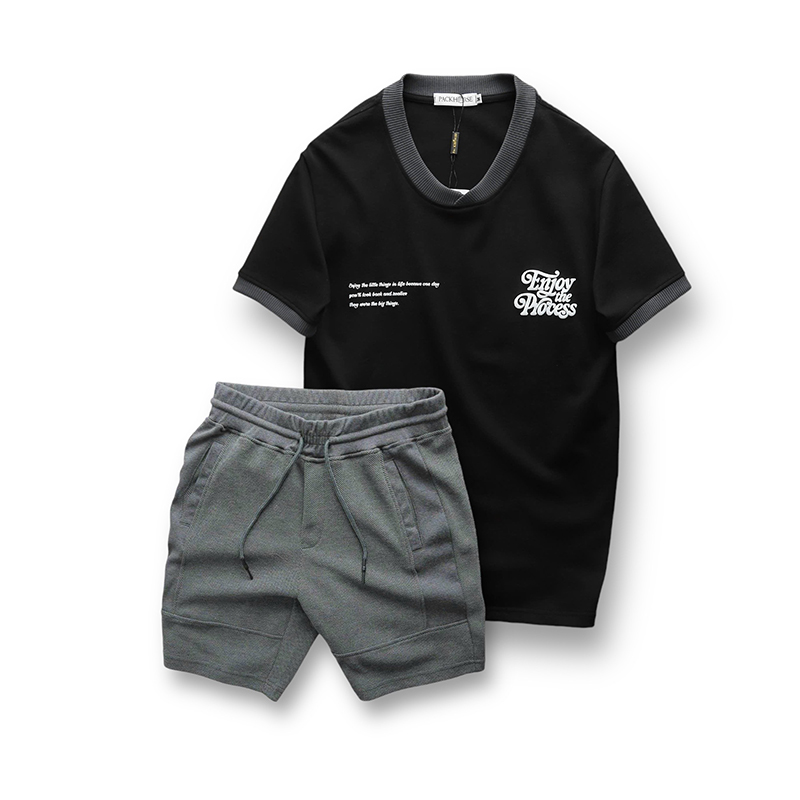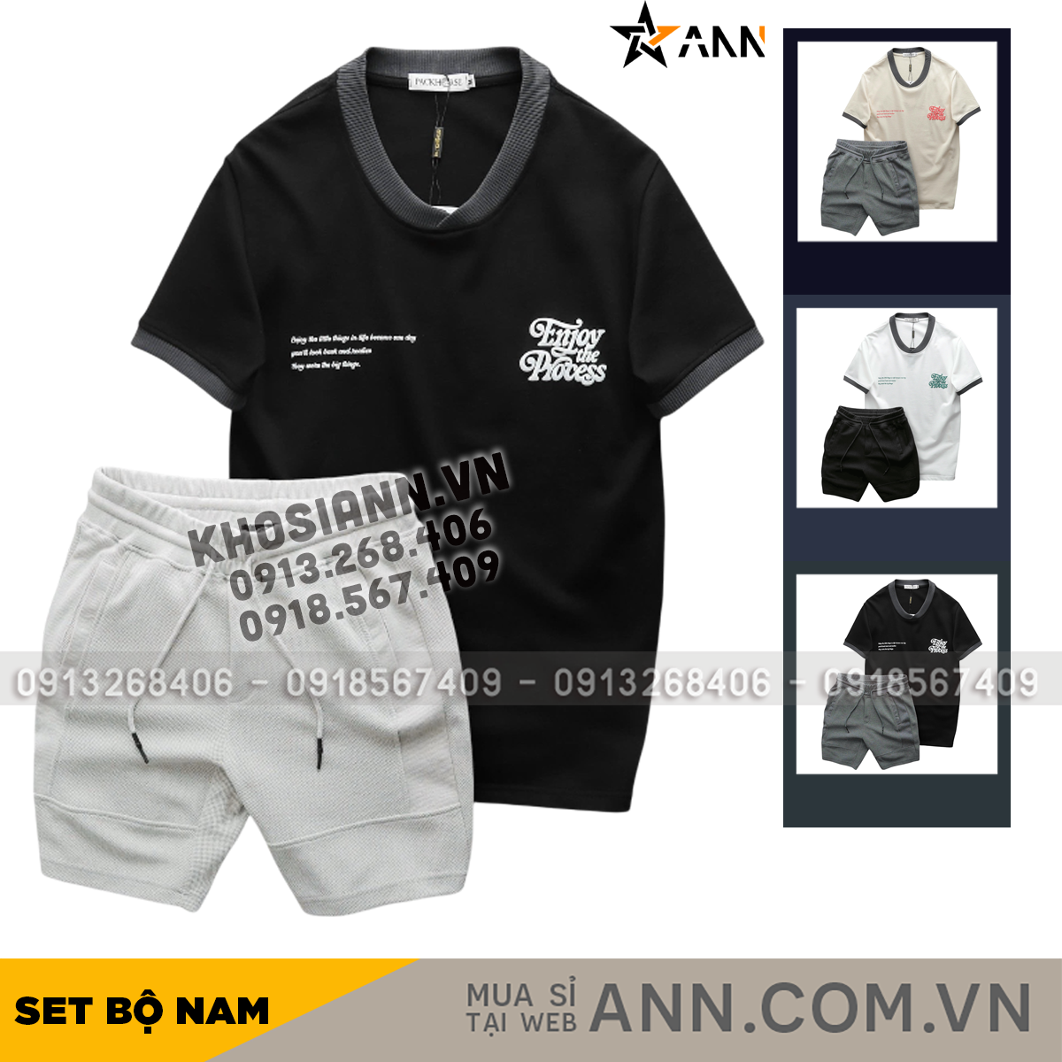 Set Bộ Nam Áo Thun Cổ Tròn In Chữ Enjoy The Process + Quần Short Thun Thể Thao Cao Cấp