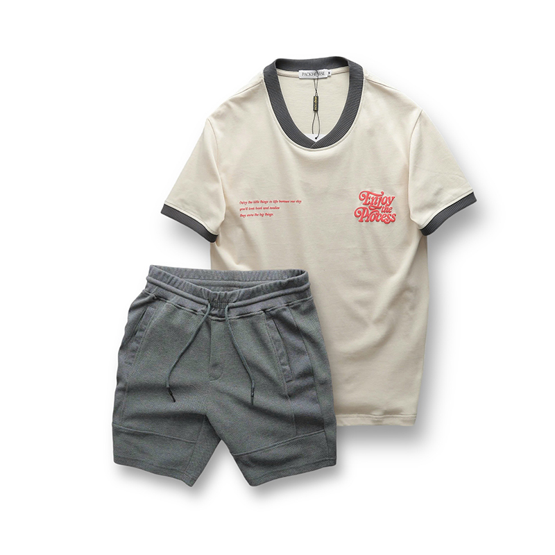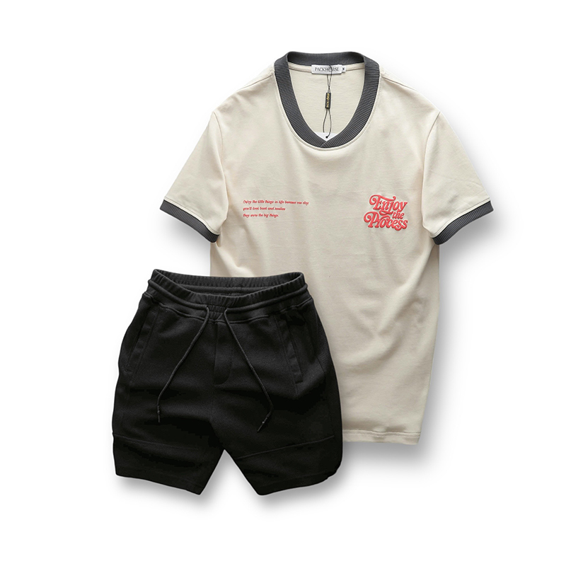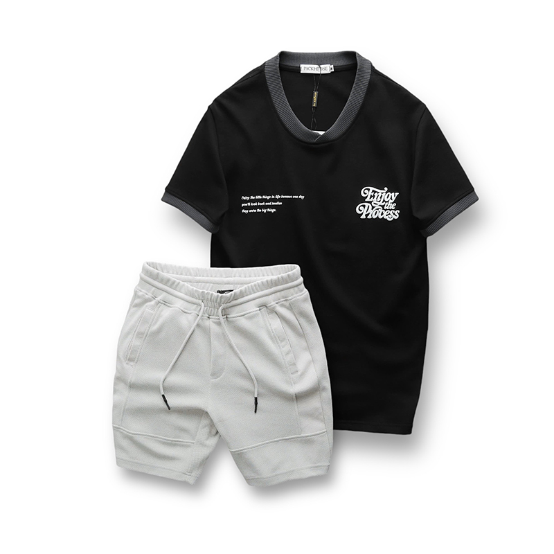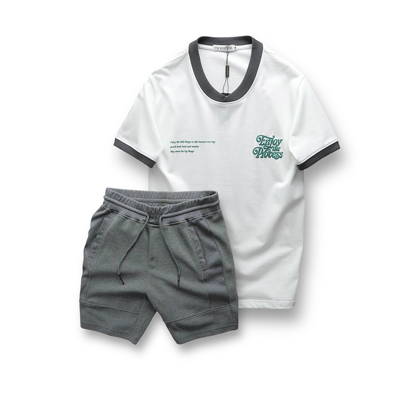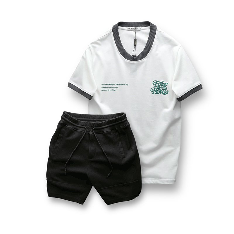 Set Bộ Nam Áo Thun Cổ Tròn In Chữ Enjoy The Process + Quần Short Thun Thể Thao Cao Cấp