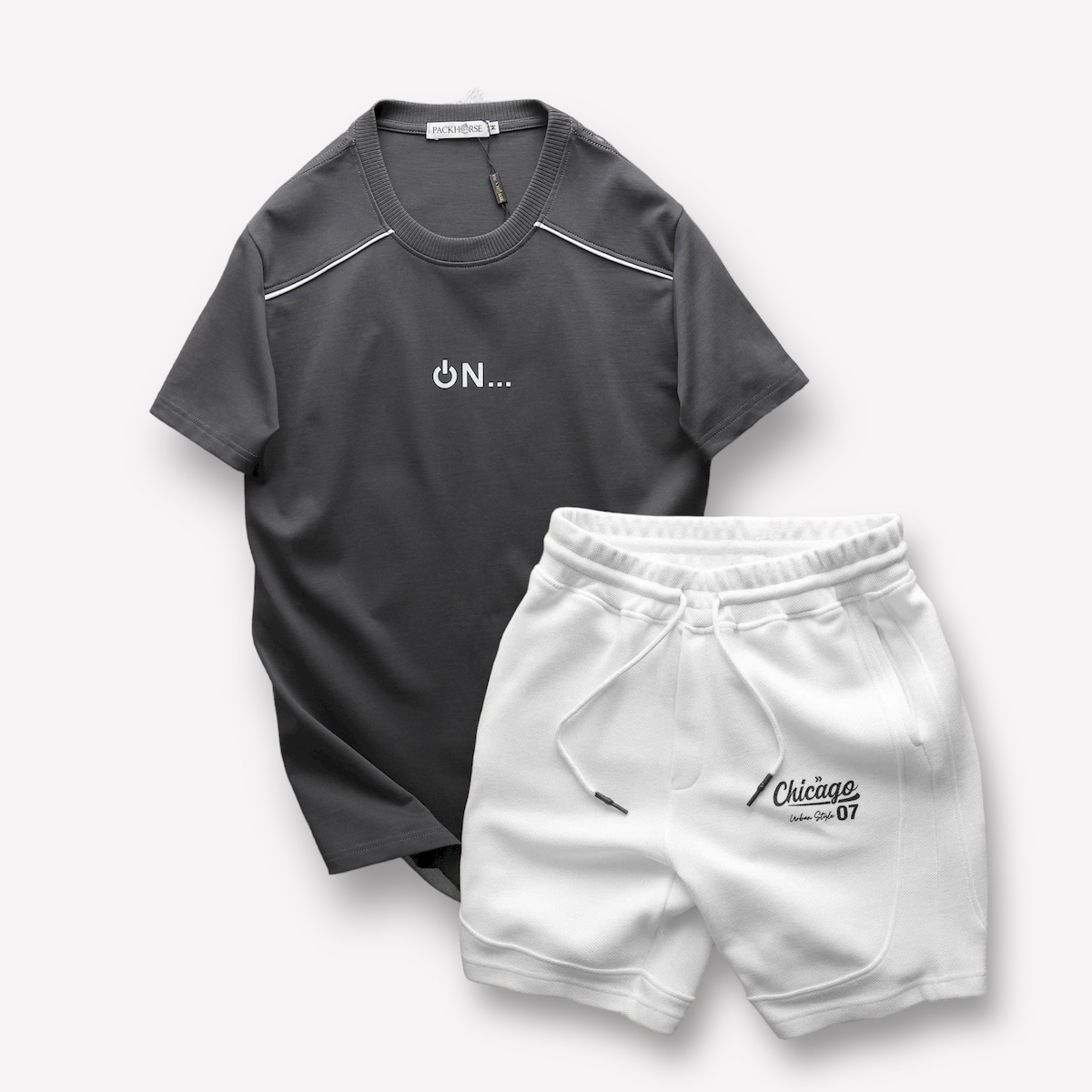 Set Bộ Nam Áo Thun Cổ Tròn Logo Chữ Nổi Quần Short Thun In Chữ Chicago