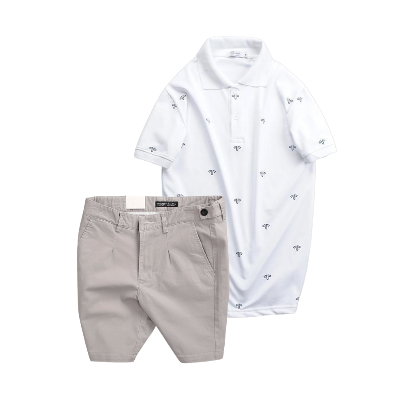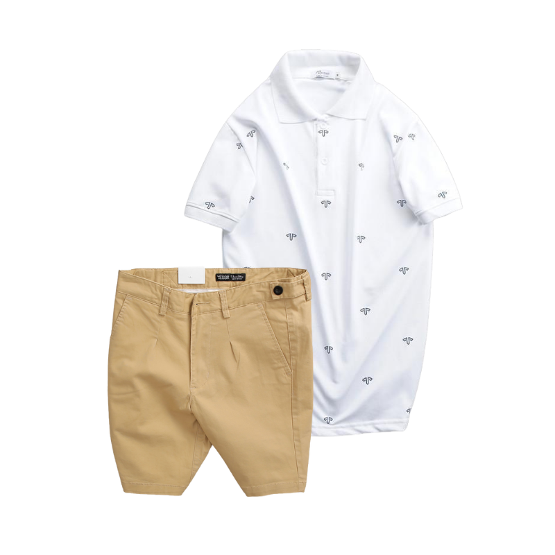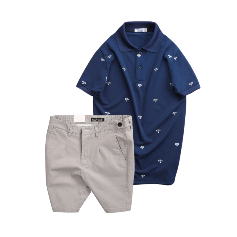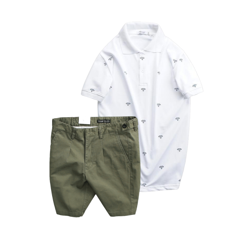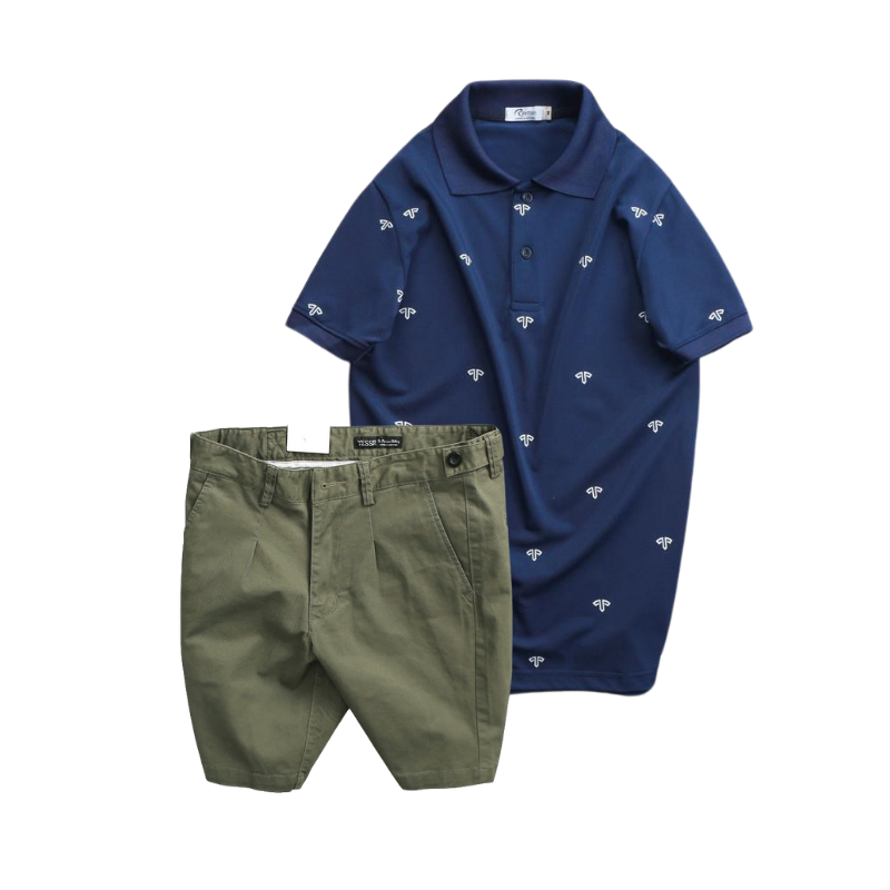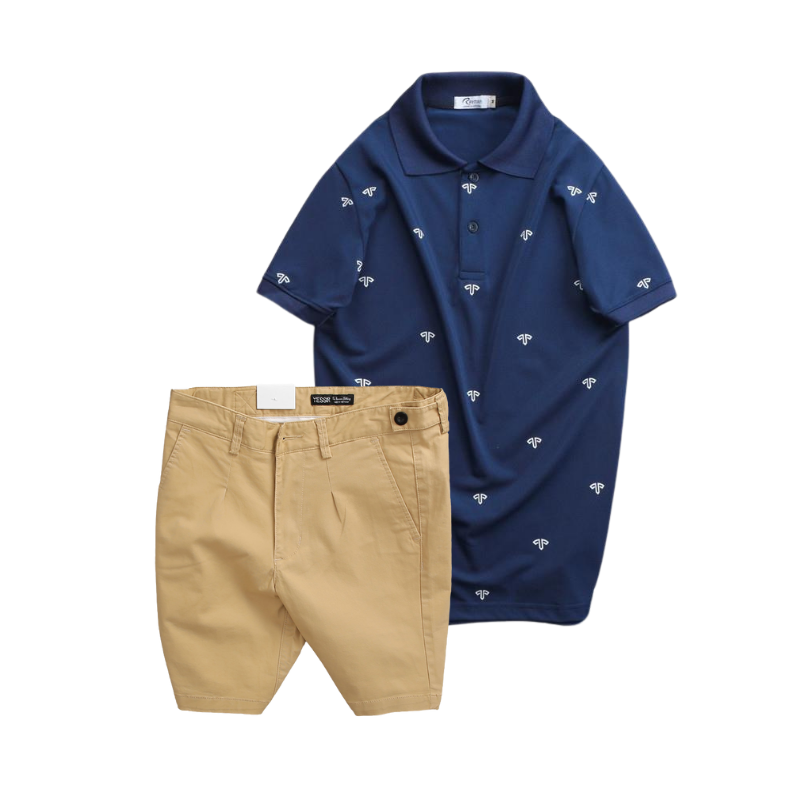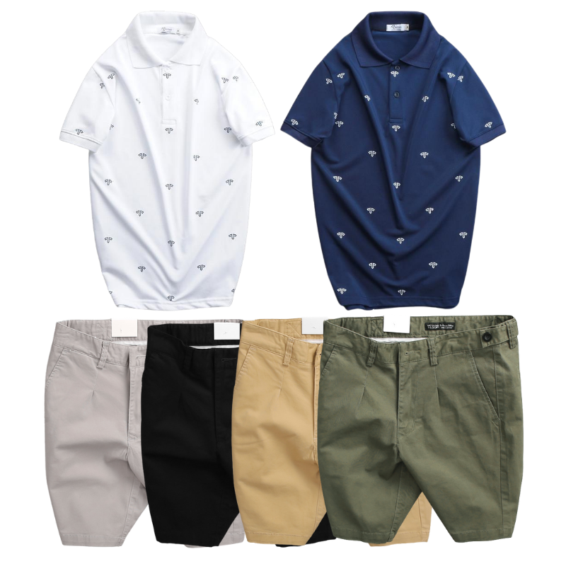 Set Bộ Nam – Áo Thun Nam Polo Cổ Bẻ In Họa Tiết Đơn Giản Thun Cá Sấu Poly Và Quần Short Kaki Co Giãn Phối Nút Cao Cấp (Có Size 36)