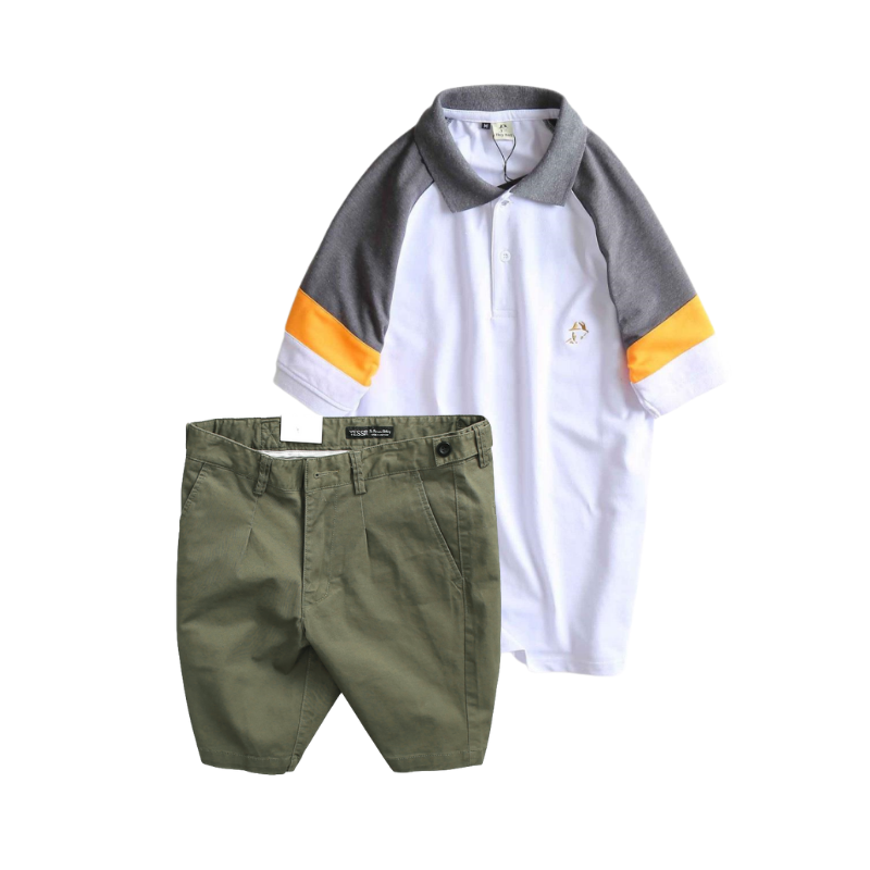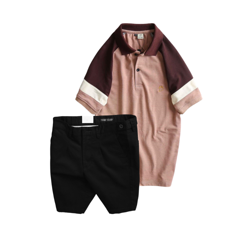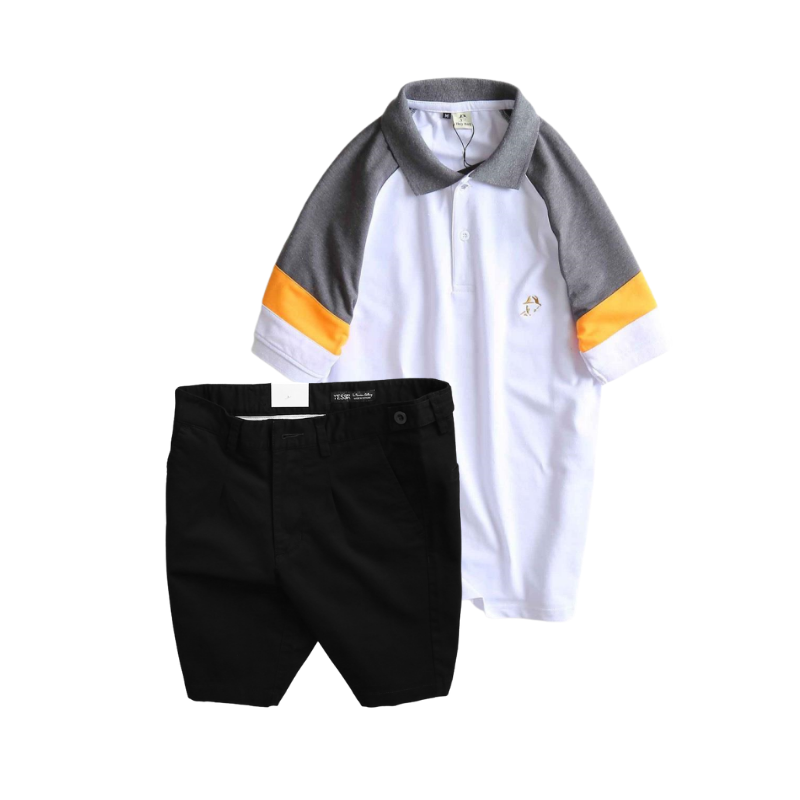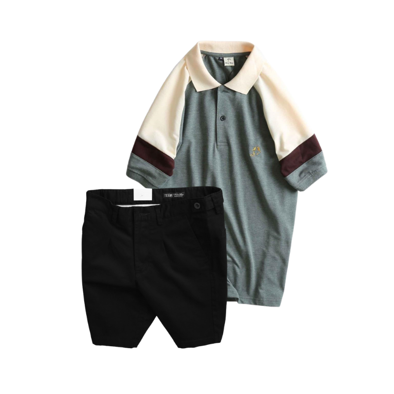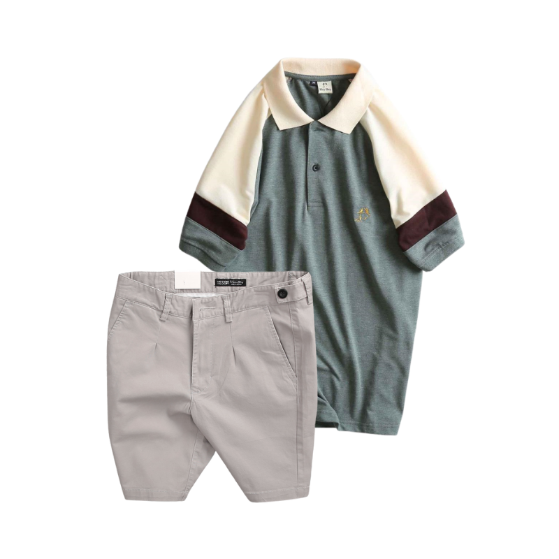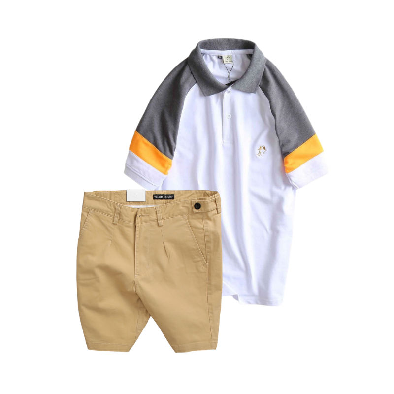 Set Bộ Nam – Áo Thun Nam Polo Cổ Bẻ Phối Màu Thêu Logo Trước Ngực Hey Boy Và Quần Short Kaki Co Giãn Phối Nút Cao Cấp (Có Size 36)