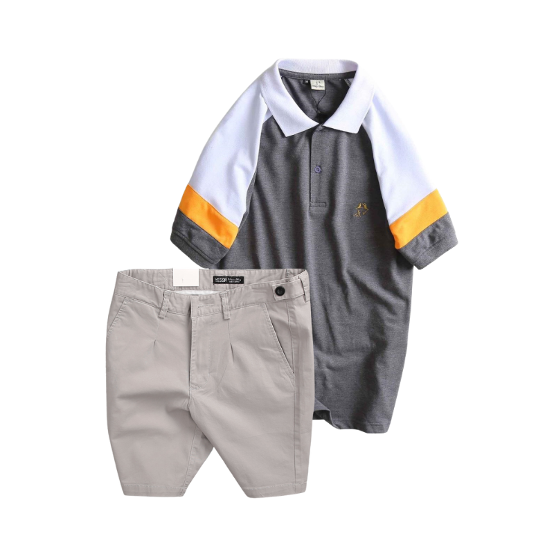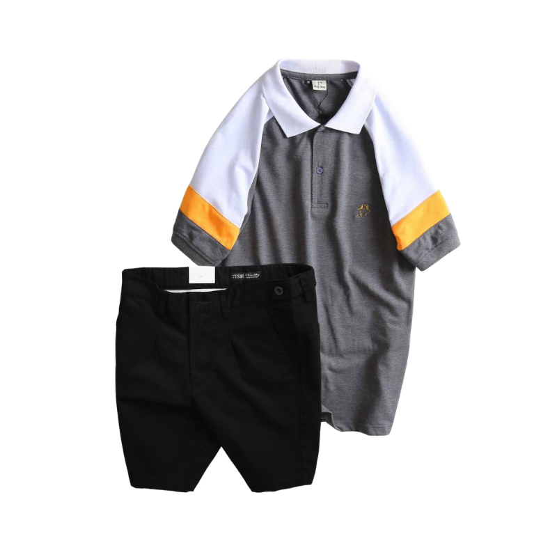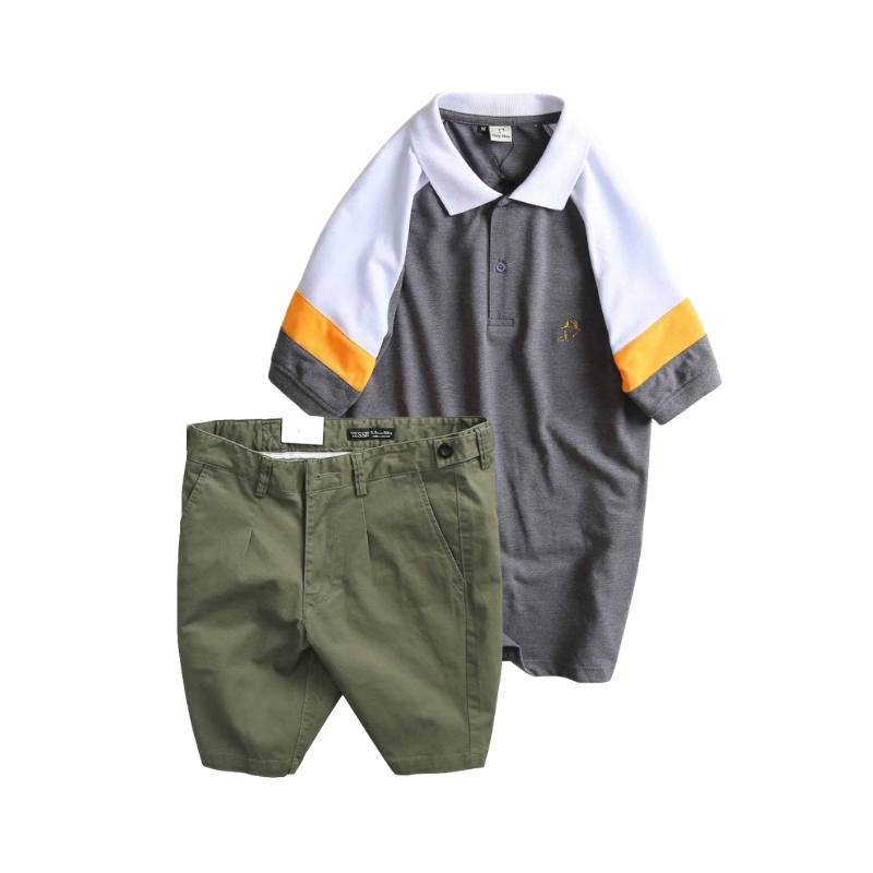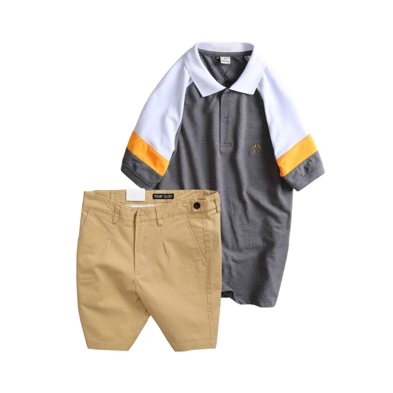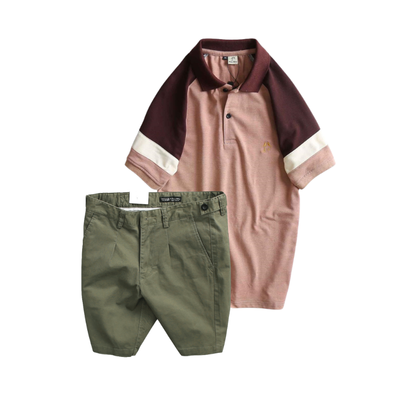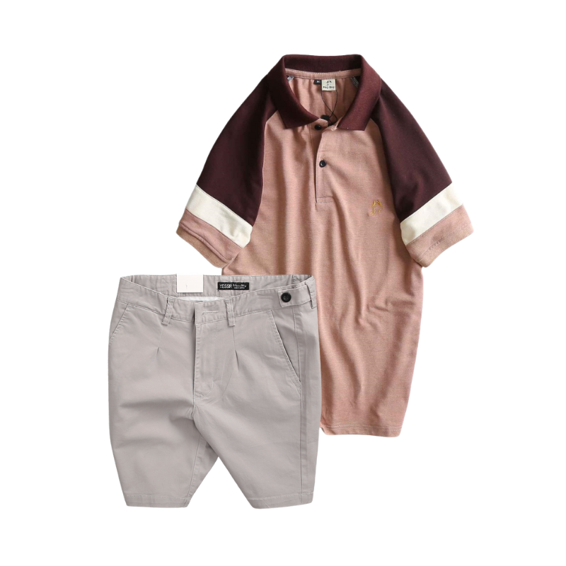 Set Bộ Nam – Áo Thun Nam Polo Cổ Bẻ Phối Màu Thêu Logo Trước Ngực Hey Boy Và Quần Short Kaki Co Giãn Phối Nút Cao Cấp (Có Size 36)