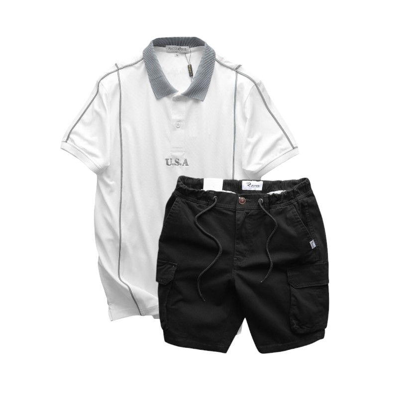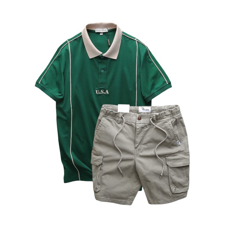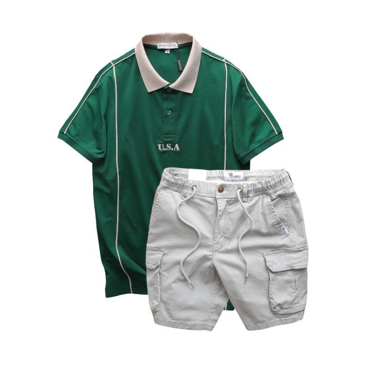 Set Bộ Nam Áo Thun Polo Pack Horse Thêu Nổi Chữ U.S.A + Quần Short Kaki Túi Hộp Cao Cấp