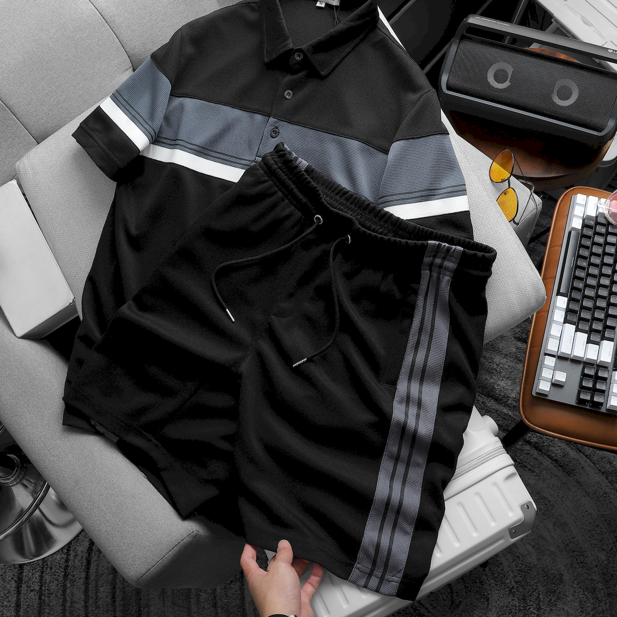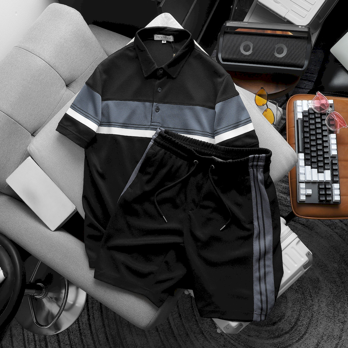 Set Bộ Nam Pack Horse Áo Thun Polo Sọc Ngang Quần Short Thể Thao