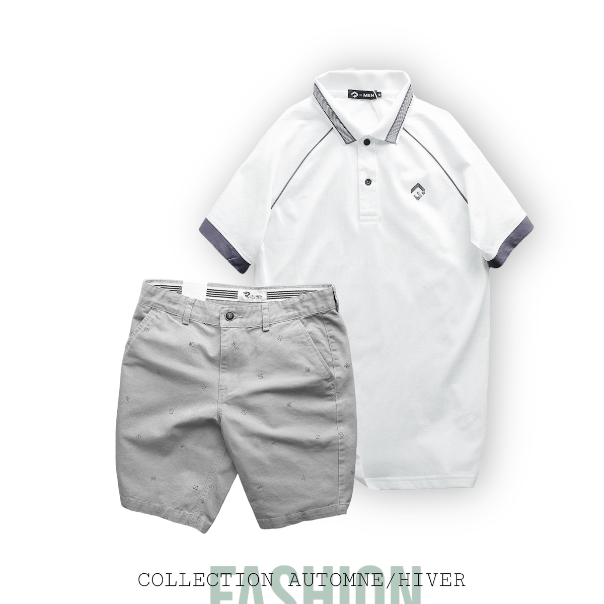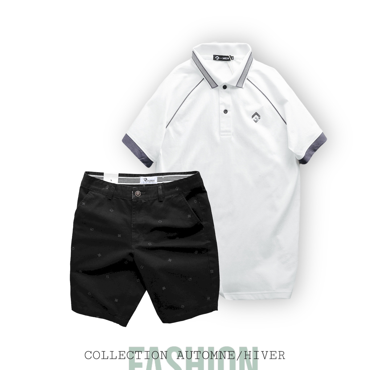 Áo thun Polo: Thiết kế cổ bẻ sang trọng, phối hoạ tiết Rubik nổi bật và được thêu logo tinh tế, mang đến sự lịch lãm cho người mặc.