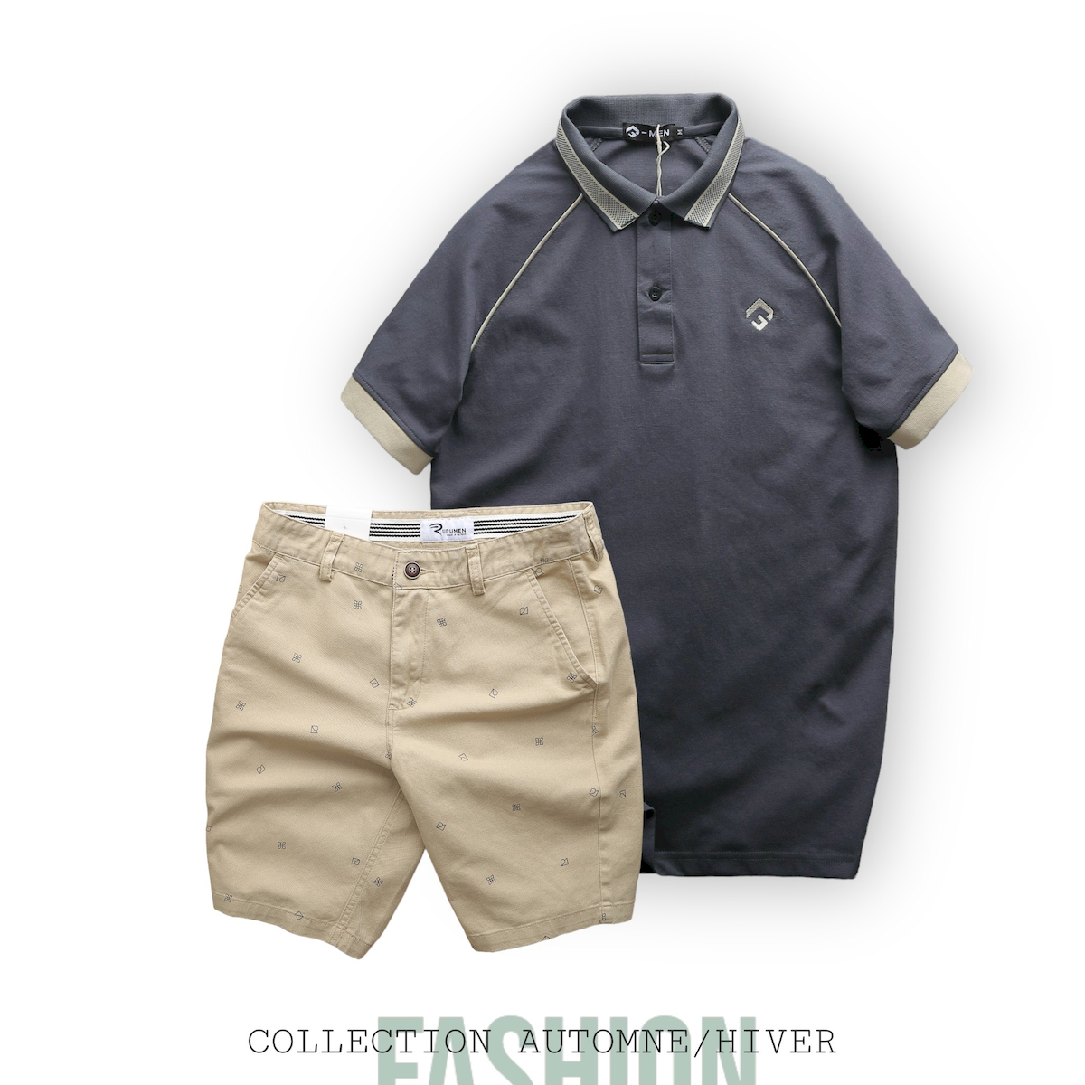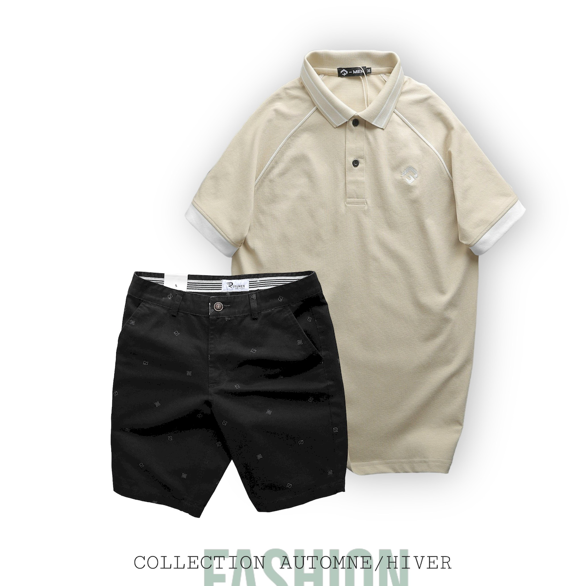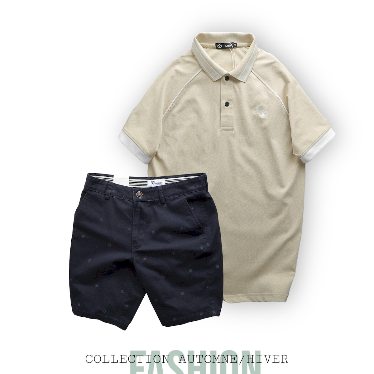 Set Bộ Nam Quần Short Kaki Hoạ Tiết Phối Áo Thun Polo Cổ Bẻ Thêu Logo Rubik