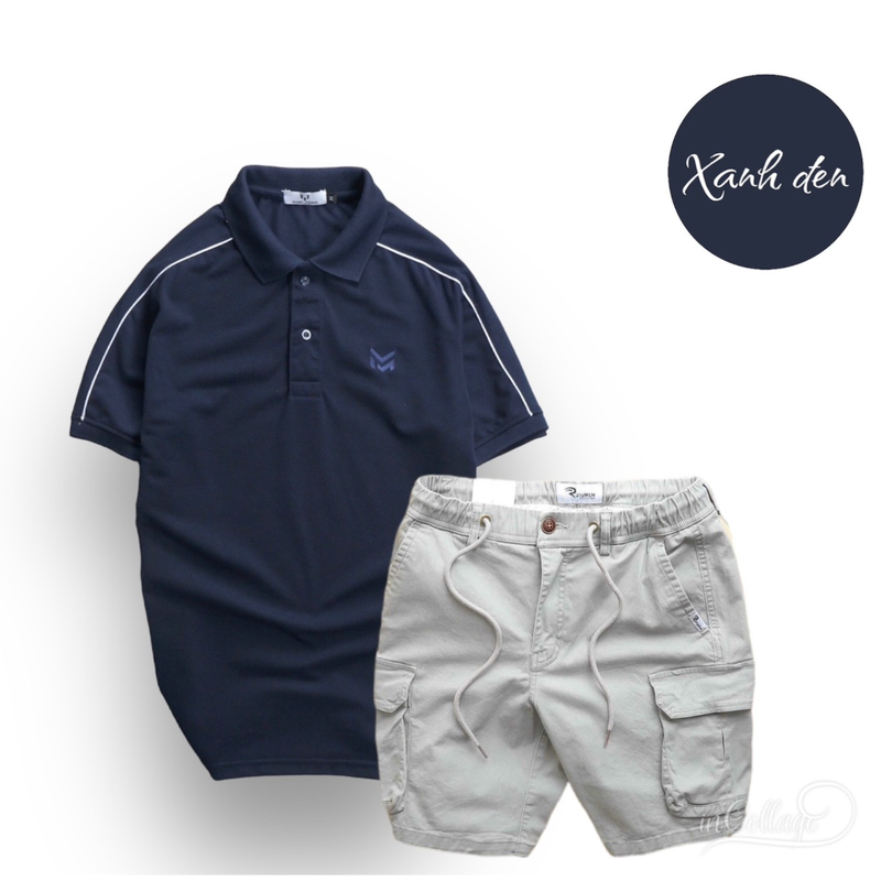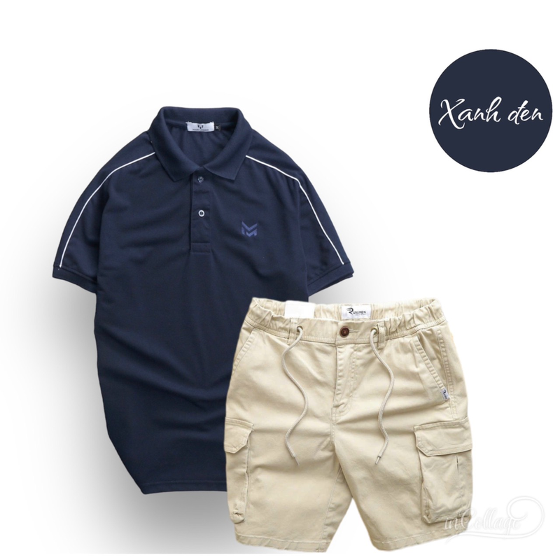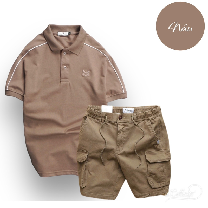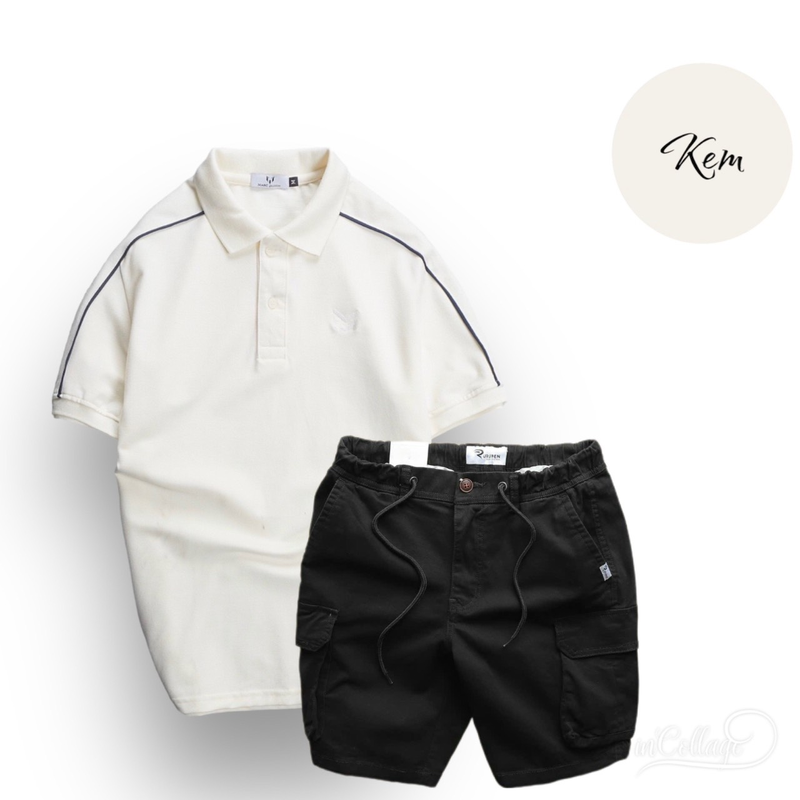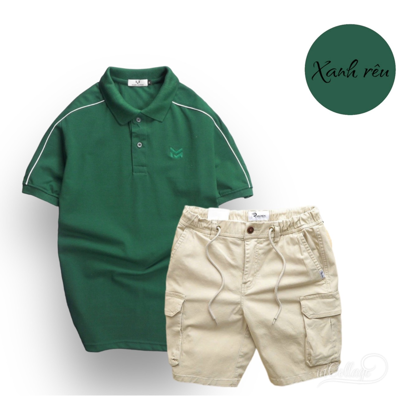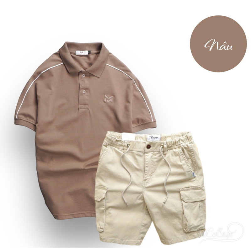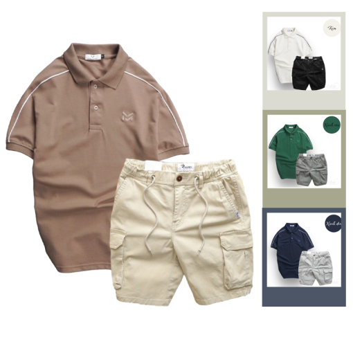 Set Bộ Nam Quần Short Kaki Túi Hộp Phối Áo Thun Cá Sấu Cổ Bẻ Viền Tay