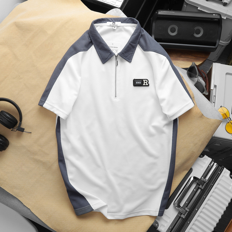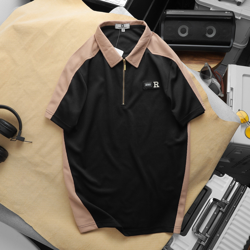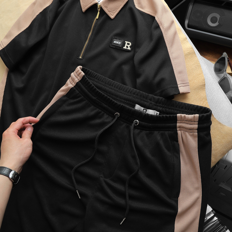 Set Bộ Nam Quần Short Thun Áo Cổ Bẻ Phối Tag Chữ R