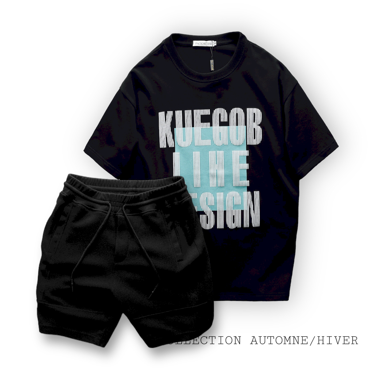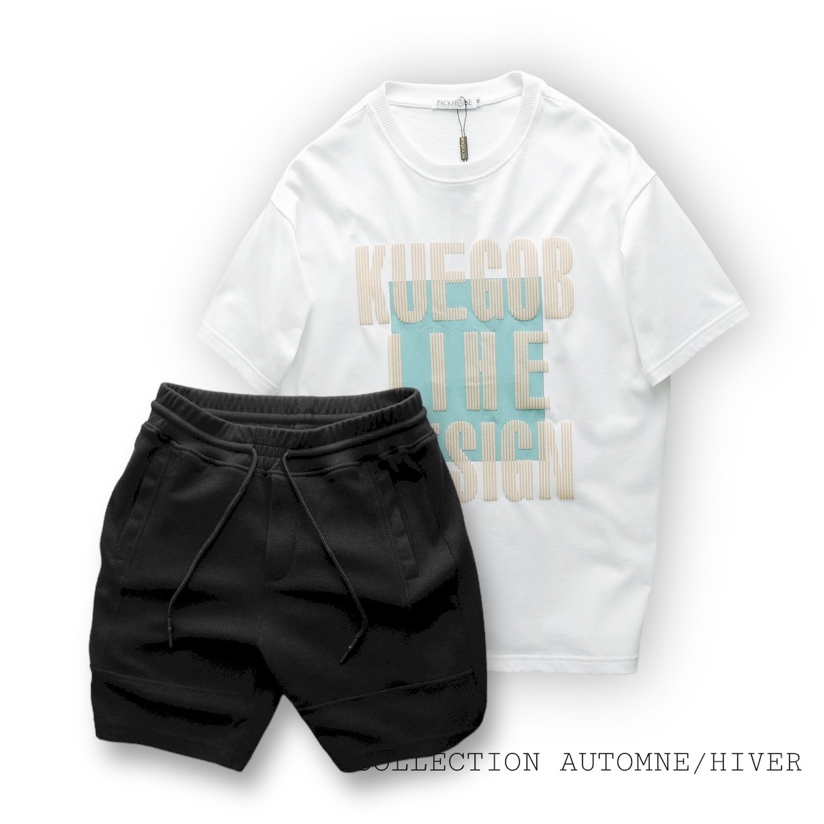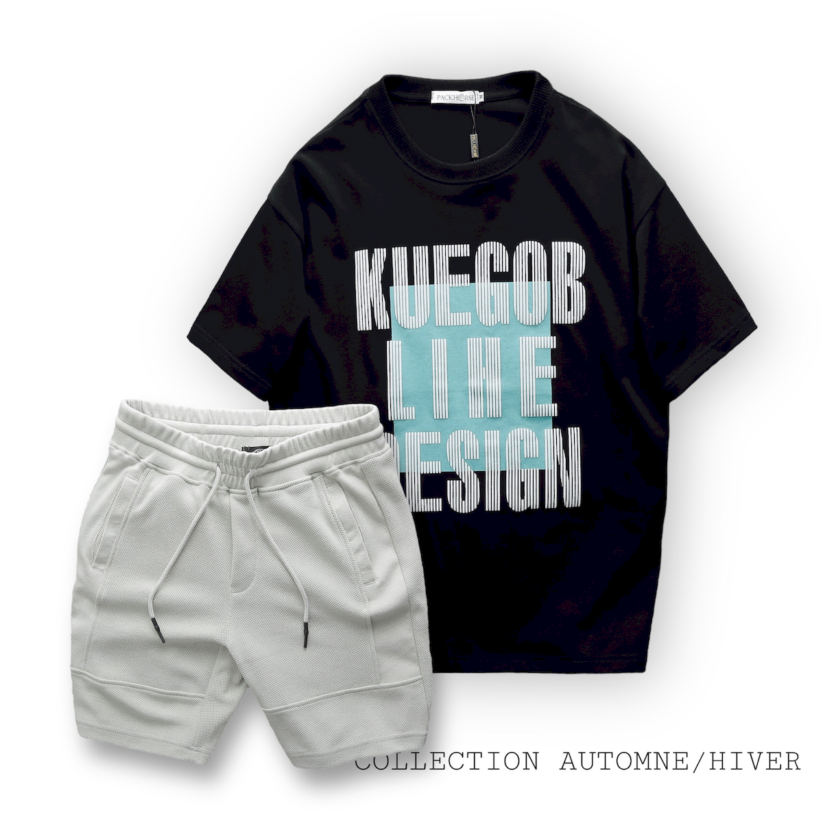 Set Bộ Nam Quần Short Thun Viền Sọc Áo Thun Cổ Tròn Pack Horse Oversize In Chữ Sọc