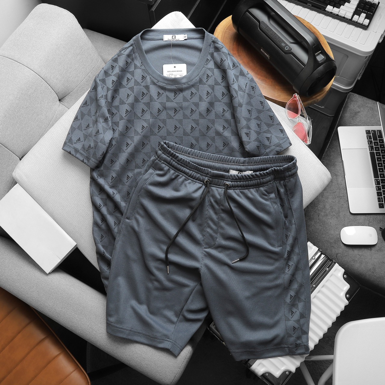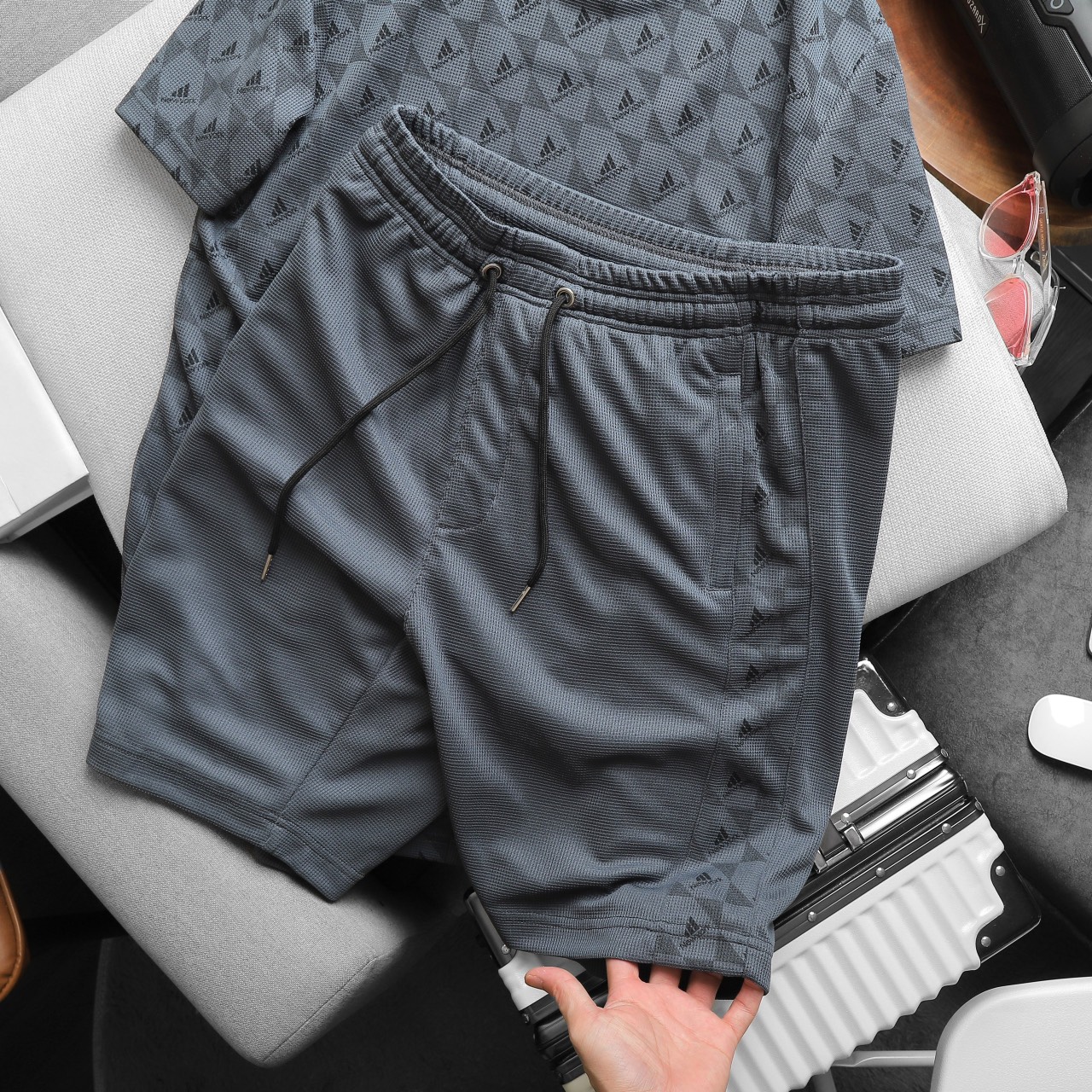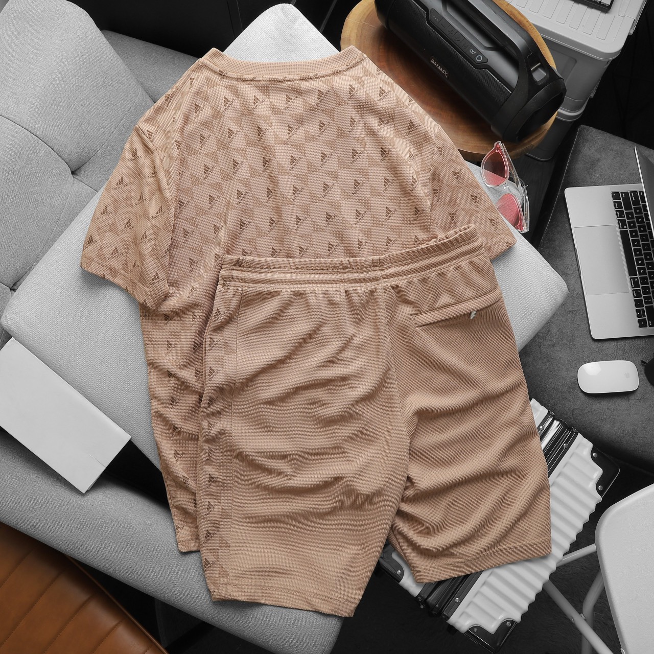 Set Bộ Nam Quần Short Áo Tay Ngắn In Logo Chìm Cao Cấp