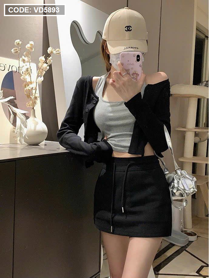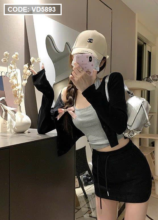 Sét body 3 món áo khoắc + áo dây + chân váy ôm