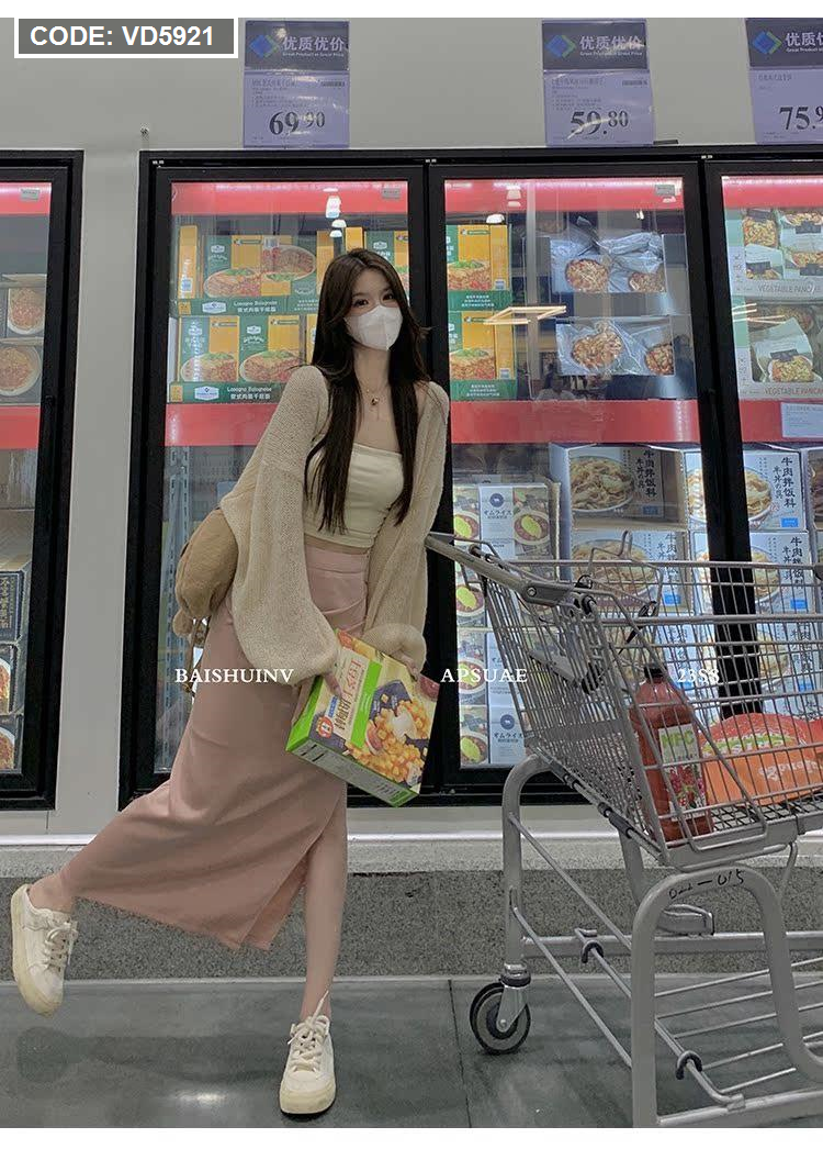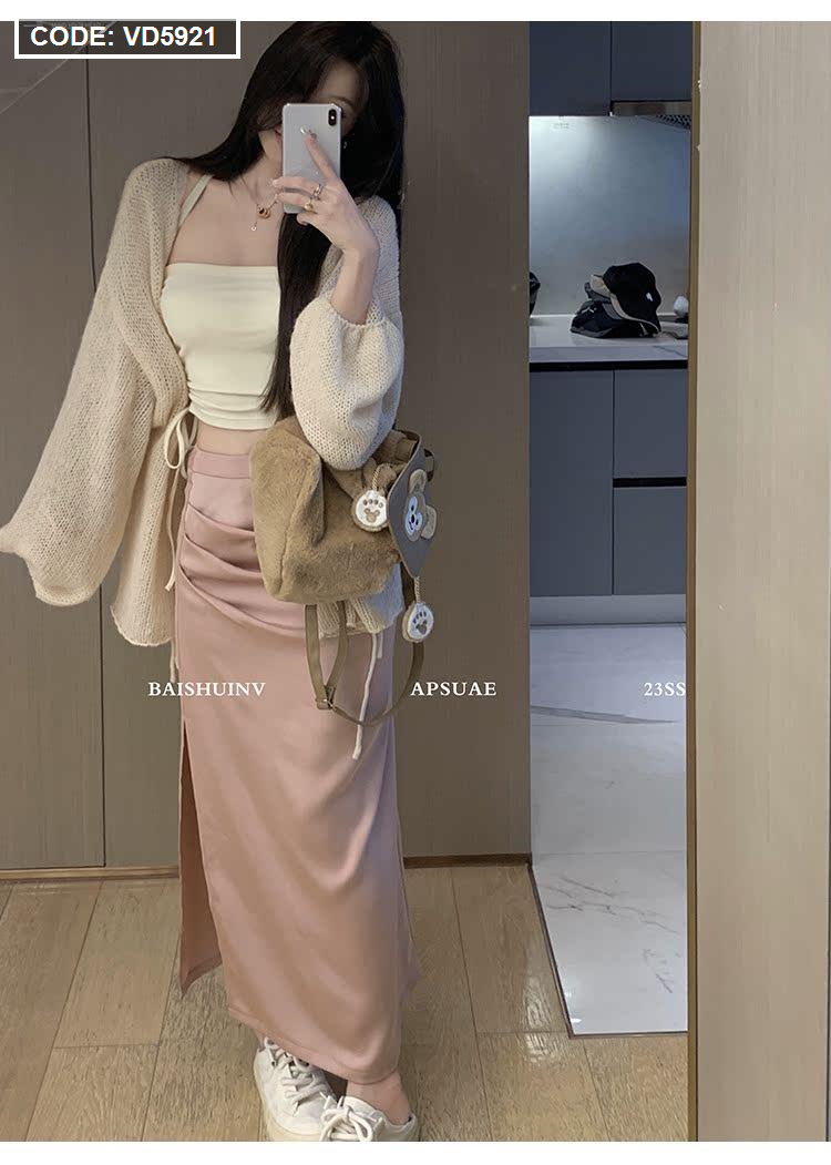 Sét hồng áo khoác len