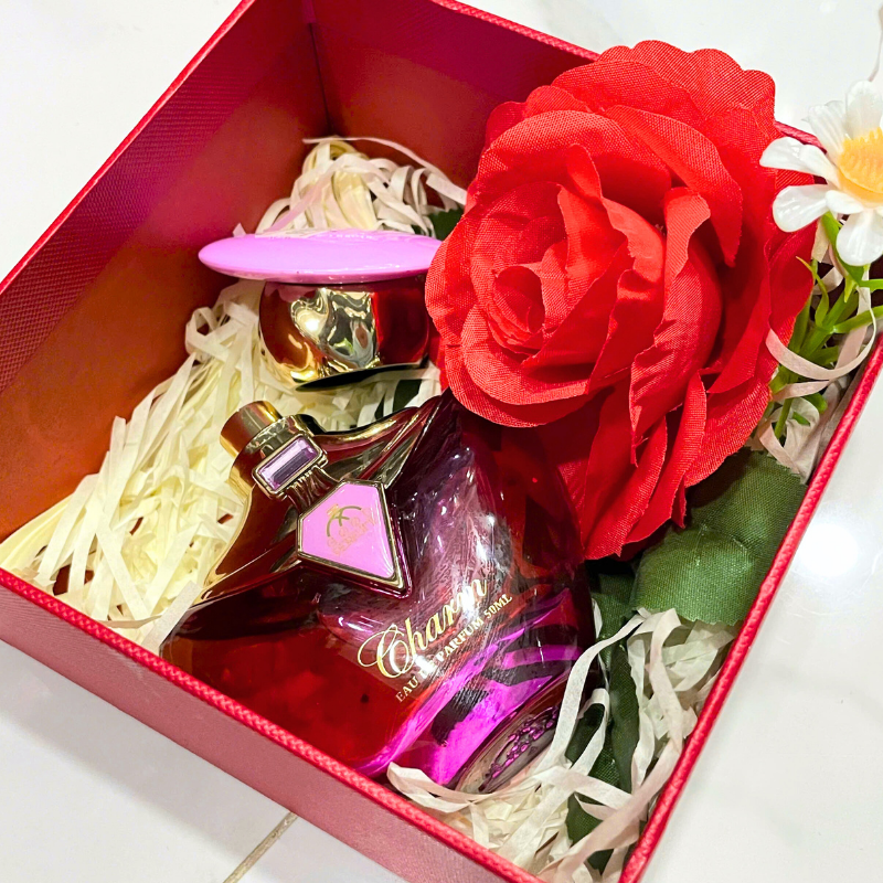 Một món quà nhỏ nhưng đầy tinh tế dành cho những người phụ nữ bạn yêu thương. Set nước hoa được đặt trong hộp quà đỏ nổi bật, bên trong trang trí hoa và giấy rơm xinh xắn tạo cảm giác vừa sang trọng vừa dễ thương. Mở hộp ra là thấy ngay sự chăm chút dành cho người nhận.