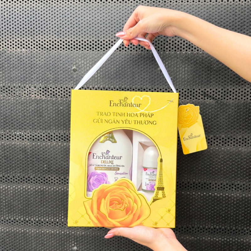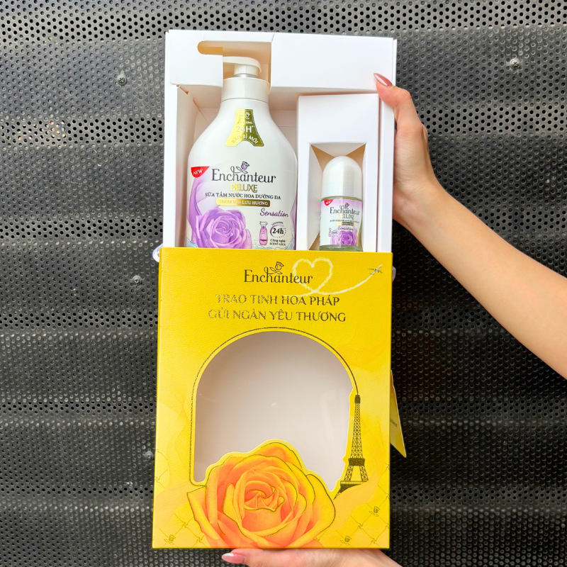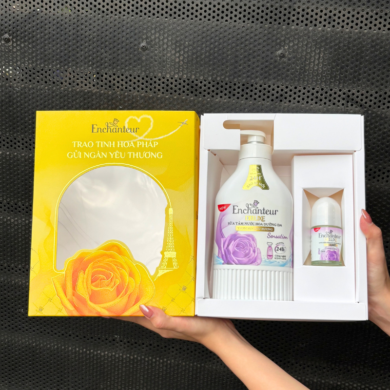 Set Quà Tặng Cao Cấp Enchanteur Deluxe Sensation Hương Nước Hoa Pháp + Lăn Khử Mùi (Set Màu Tím)